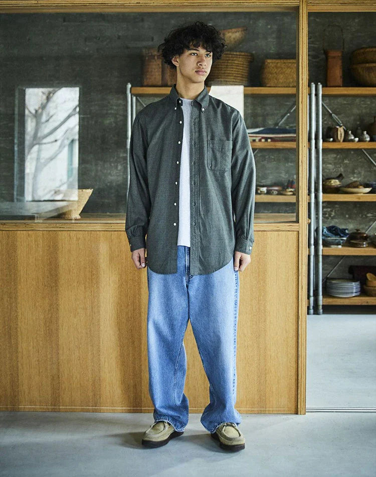 orSlow STANDARD BUTTON DOWN SHIRT SOFT SUBTLY BRUSHED MINI CHECK CHARCOAL GRAY
