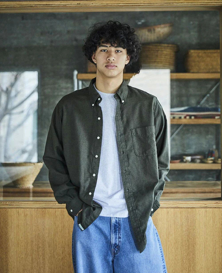 orSlow STANDARD BUTTON DOWN SHIRT SOFT SUBTLY BRUSHED MINI CHECK COFFEE BROWN