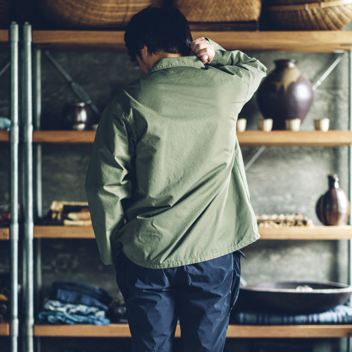 It is based on the Trooper shirt that was used by the US military in the 1960s. It has large flap pockets on the chest. thicker arms and cuffs without cuffs. It has different details and volume from the usual utility shirt (03-8045-16). making it a piece that can be worn more like outerwear.