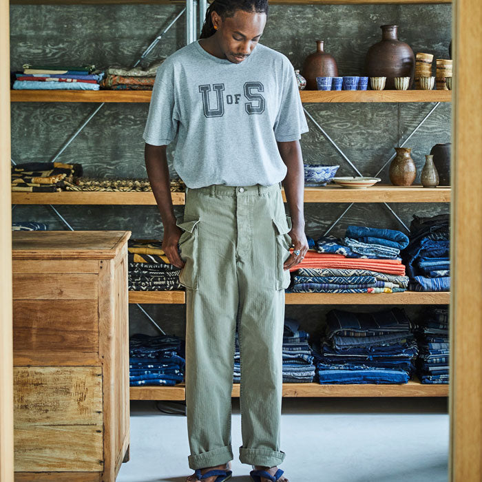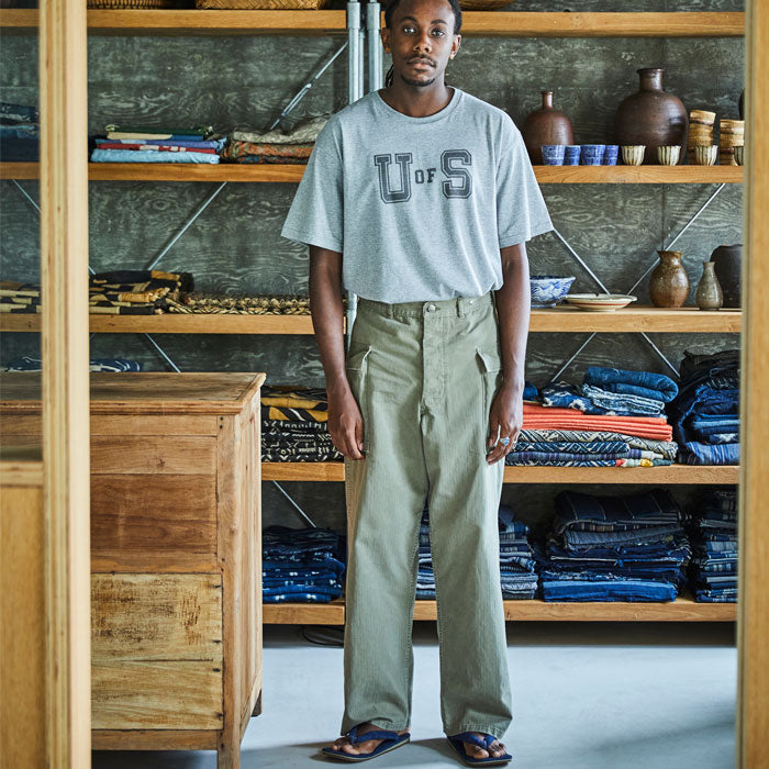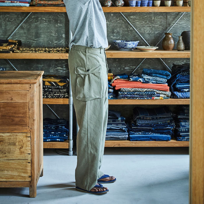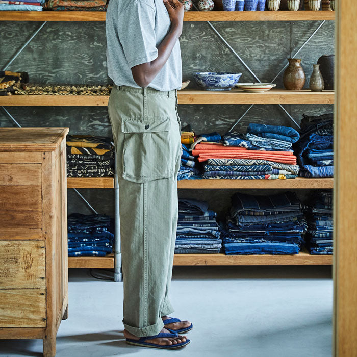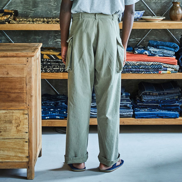 Pants inspired by 1940s US ARMY M-42 TWO POCKET HBT TROUSERS.