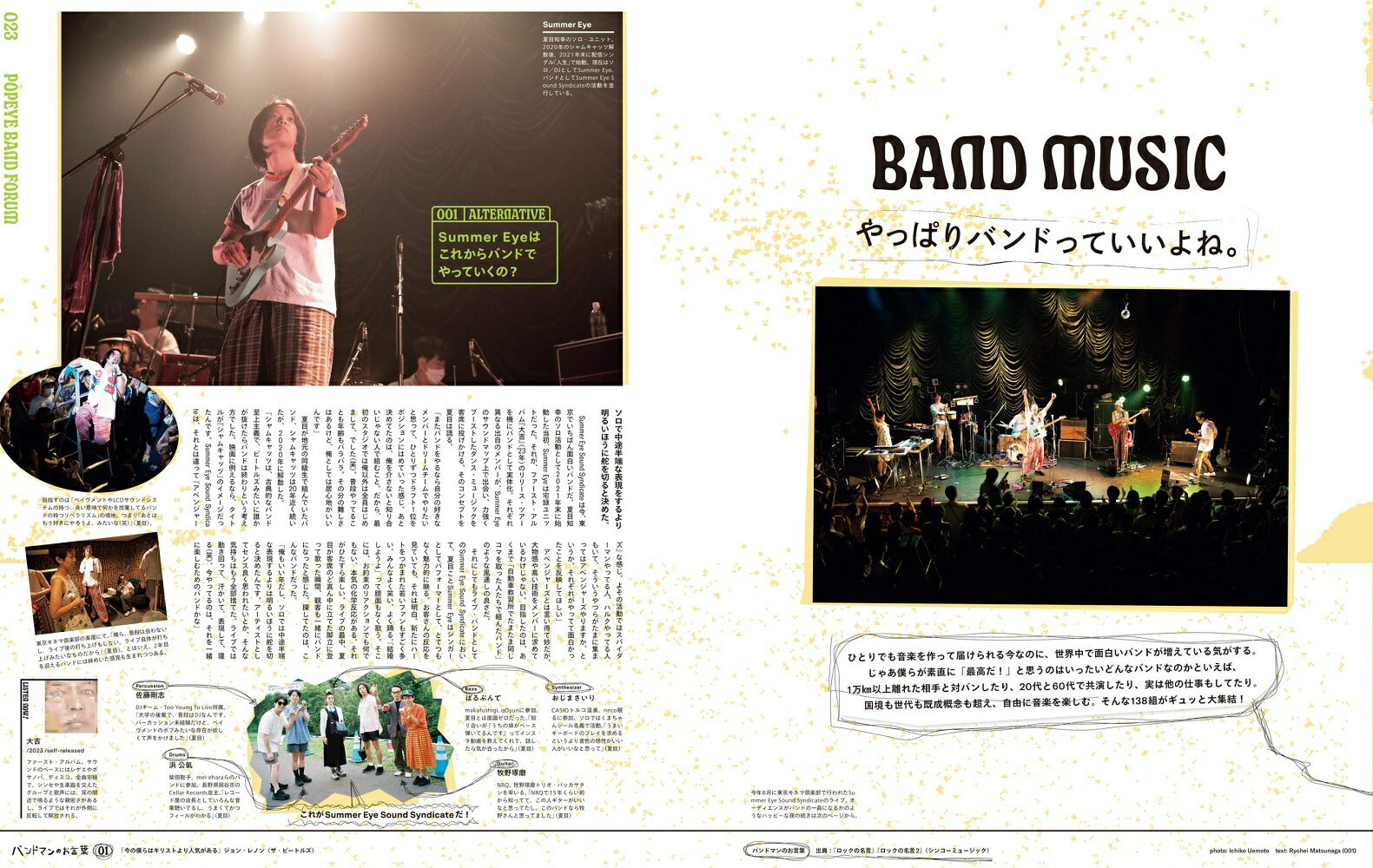 Wise words from veterans who have seen it all: Kinichi Motegi. Hanaregumi. Shintaro Sakamoto. Atsushi Yanaka. Keiichi Suzuki. and Ken Yokoyama share their thoughts on the essence of a band.