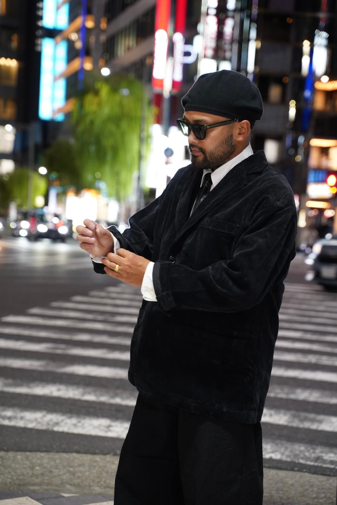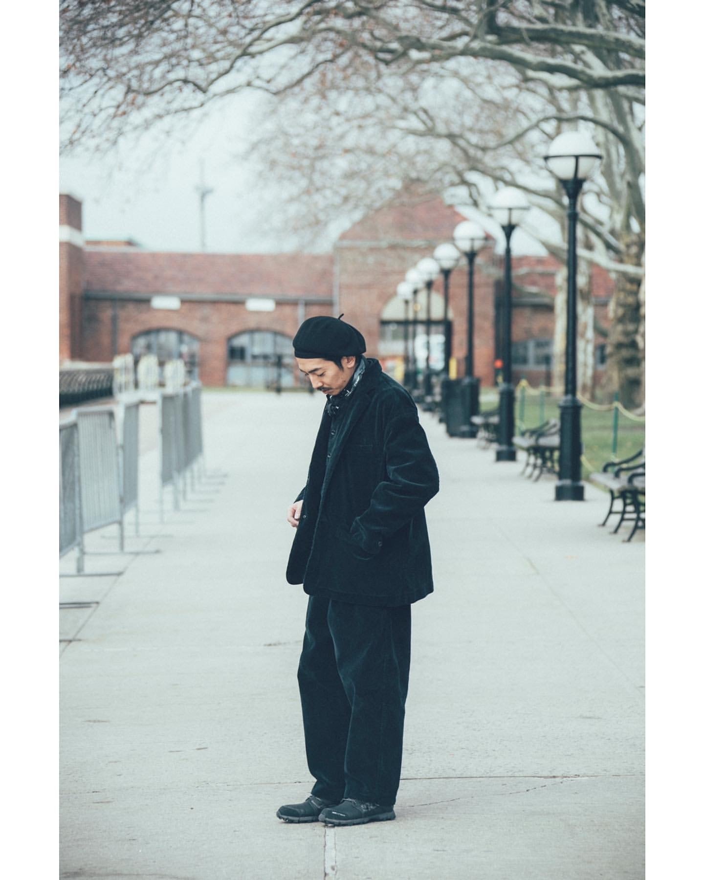 The classic jacket and pants made from fabric by Brisbane Moss. a prestigious corduroy manufacturer. are back for the first time in several years. Some of you may have been waiting for this! The firm and crisp fabric emphasizes the details. and when you wear the top and bottom together. it makes a big impact. The jacket is a wide two-button style. and you can wear it with the collar turned up without feeling out of place. so we recommend pairing it with a stole or scarf in the winter.