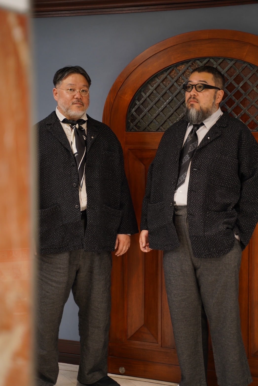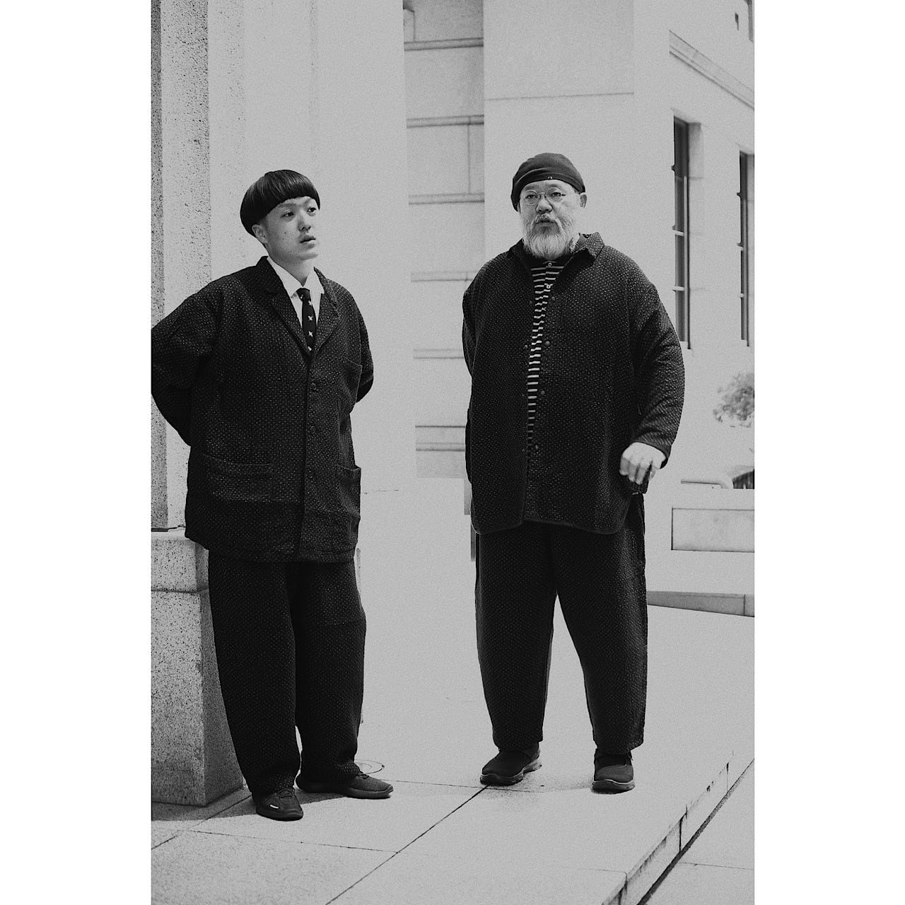 Like the blue NEW SASHIKO. it is lighter and more comfortable to wear than it looks. This series is more comfortable to wear than it looks in the picture. It is made of the same original fabric as the blue. but the black has a more subtle stitching and the pattern is more prominent. As the name suggests. the wide jacket is loose in both width and shoulders. and the length is short considering the size. Personally. I would like to wear this as a set with the NEW SASHIKO black Bebop. The collar is also low. so you can enjoy wearing it with a scarf or something. This wide jacket is not too formal. but it is also great to wear it casually.
