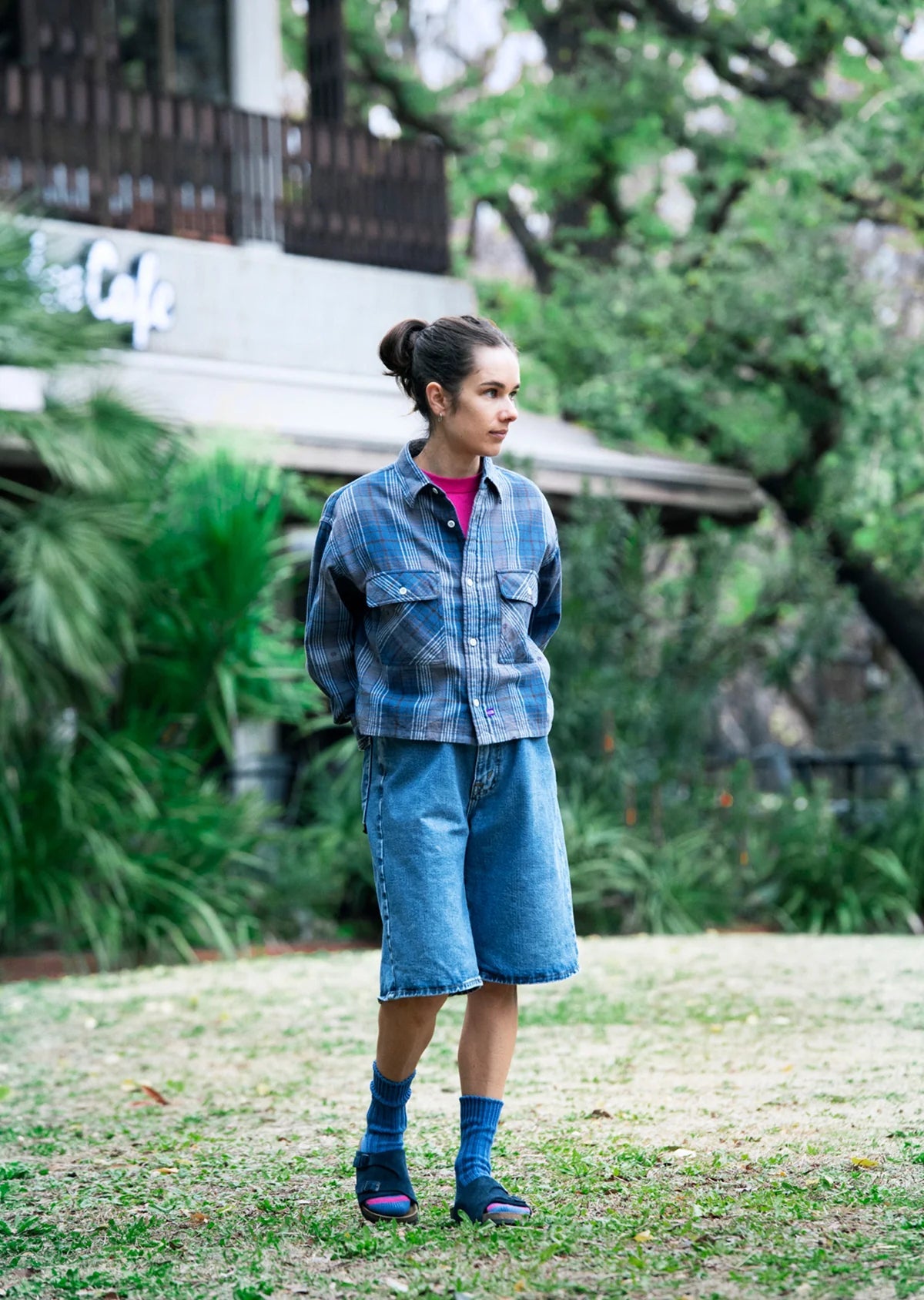 Released as the latest version of R1398 CHUNKY RIBBED CREW SOCKS. this item can be paired with even more versatile types of shoes with slightly thicker fabric and the same simple design. Just like the previous model. each item is knitted with organic cotton yarn by an old-style low-gauge knitting machine that only a few craftsmen can operate. The eye-catching coloration is inspired by outdoor wear made in the 1980s and 1990s. The fabric is thick and durable. but also has excellent breathability because of the chunky stitches. Each pair goes well not just with sneakers but also with sandals.