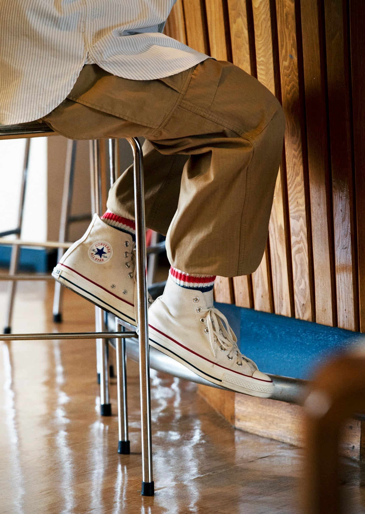 These two stripes ankle socks are perfect to match with spring/summer outfits. The 3x1 ribbed fabric is knitted with an old-style low-gauge knitting machine with a mix of linen yarn and organic cotton yarn produced by a unique fuzz-resistant spinning method called compact spinning. Linen is known as a material that is excellent in breathability. moisture absorption and moisture desorption.