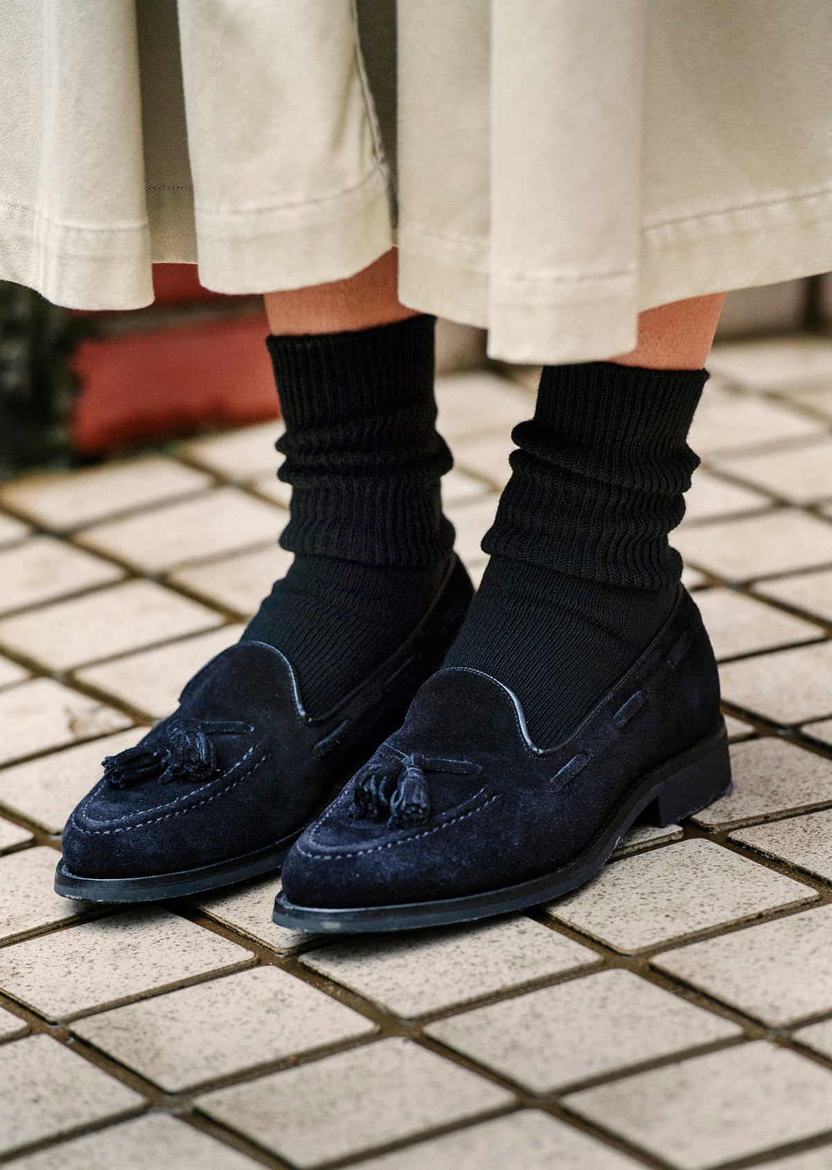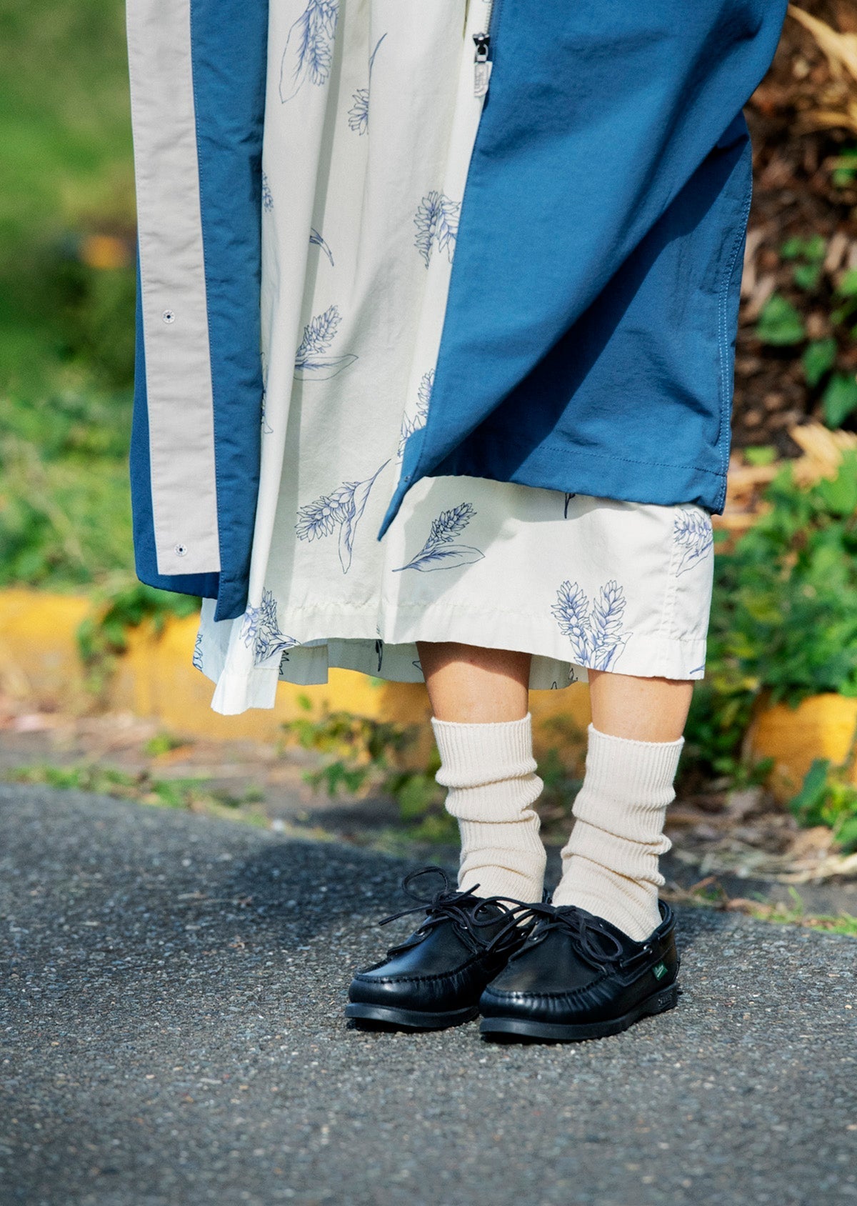 This combo pack includes three pairs of simply designed socks made of undyed organic cotton. The leg of each sock is 1x1 rib knitted for soft stretch. while the foot is jersey knitted for less stretch to avoid the item to be crumpled in leather shoes. Knitted with naturally colored cotton (Chamen). the brown pairs are undyed. let alone the ecru one. The gray color is created also not by dyeing but by causing a chemical reaction on rare pale green cotton (Midorimen). while applying a plant dying method called mordanting to fix the color. The color was born as a by-product of a study to prevent Midorimen cotton from color fading by sunlight because the material inherently has low color fastness to light.