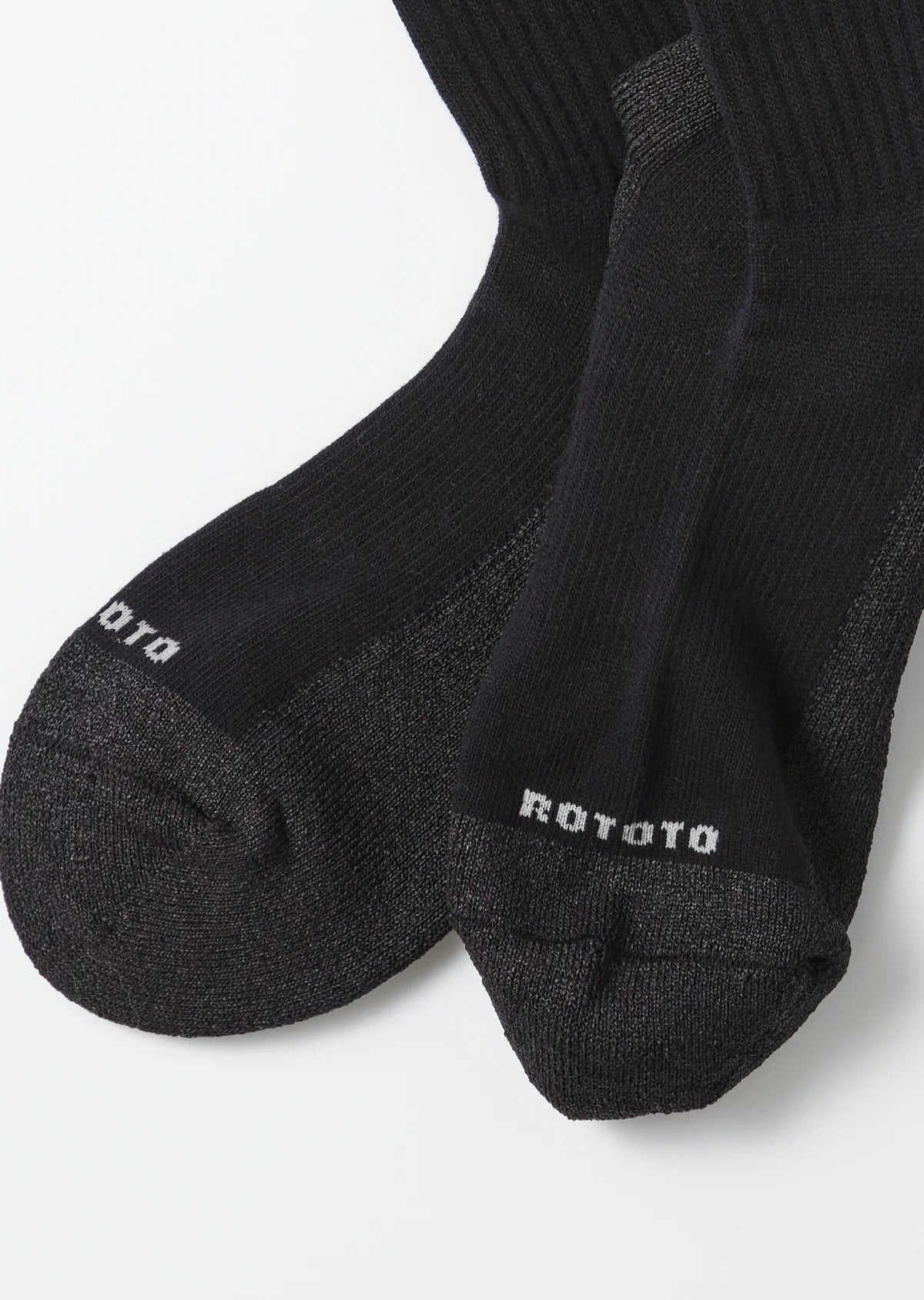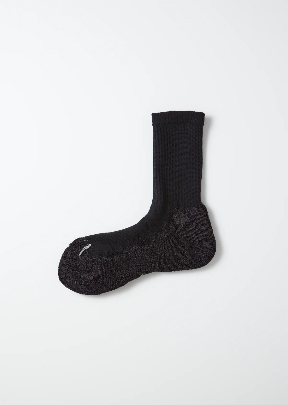 Despite the solid. simple appearance. these socks feature soles pile-knitted with Washi yarn. The cotton cuff is soft on the skin. while the sole has a unique crisp feel. The design of this pair is full of creative ideas. taking advantage of the characteristics of each material. Washi yarn is said to have excellent moist-wicking and quick-drying properties as well as a deodorizing effect.
