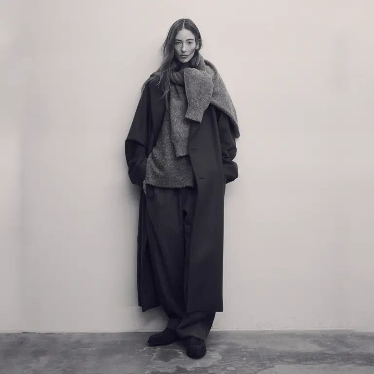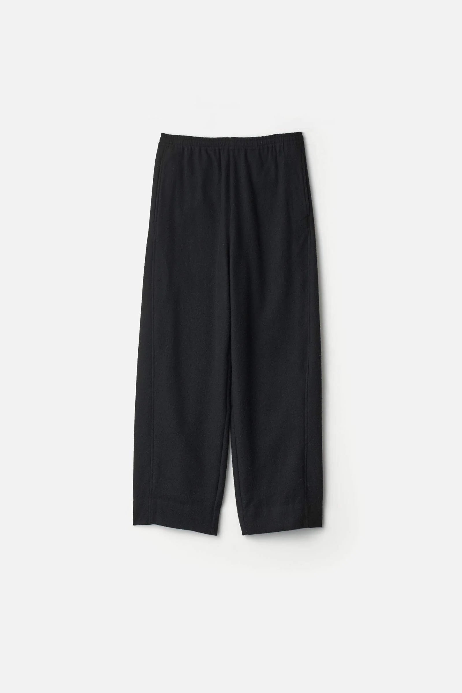 Easy trousers crafted from wool cashmere flannel. featuring the beautiful texture of cashmere and the natural volume and elasticity of wool. with a warm and soft fleece-like touch. Made from a blend of white cashmere and Australian merino extrafine lambswool (17.5μ). the fabric is exceptionally light and soft. The side seams are slightly twisted to add subtle nuance to the silhouette.