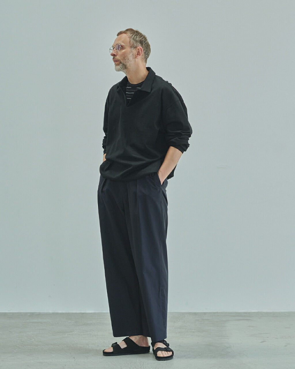 We created a long-sleeved polo shirt using a firm ramie blend material.