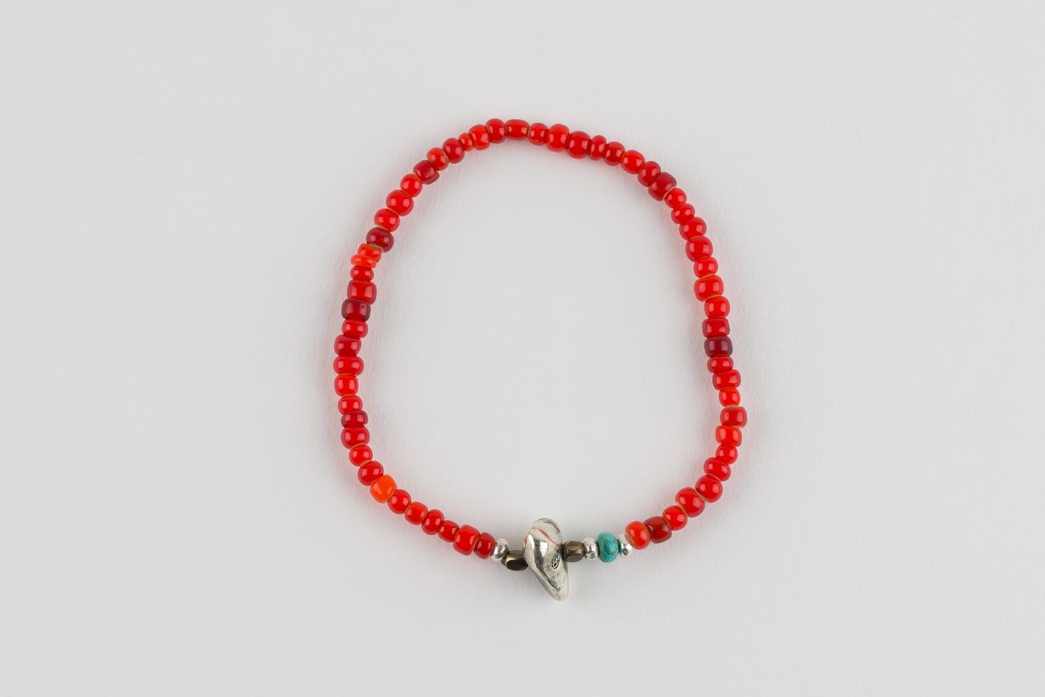 A bracelet strung with beautiful small red antique beads (white hearts).