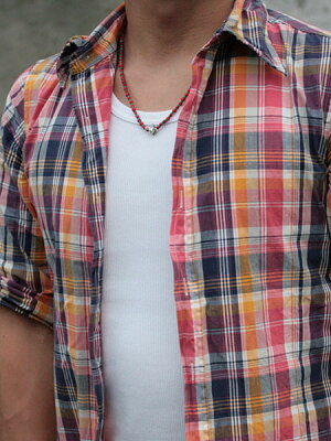 The red antique beads are made of glass and are called “White Heartsâ€?