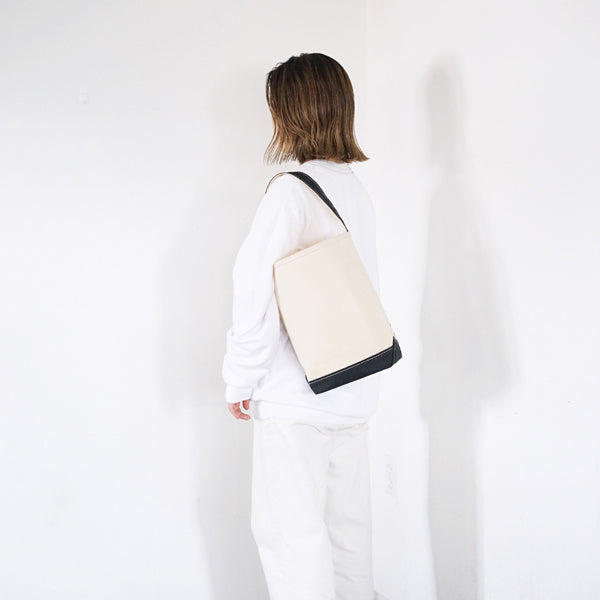 This tote bag is designed to hold a baguette. SMALL is just the right size to hold an A4 file. The handles are attached at the front. making it easy to carry a baguette or other long items on the shoulder.
