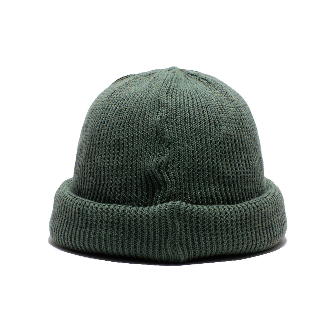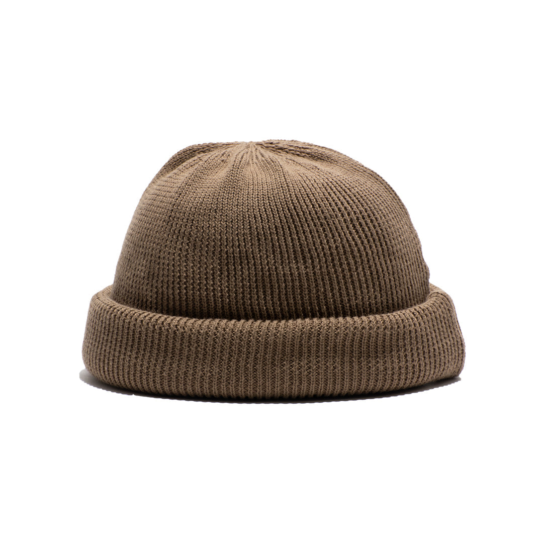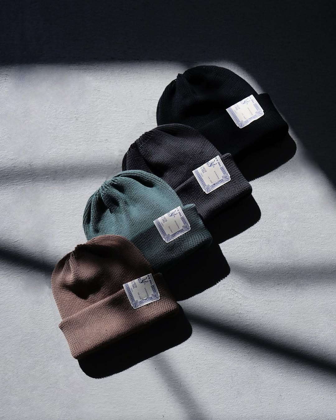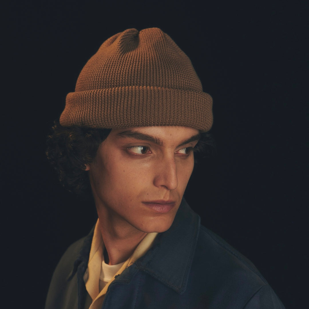 The ceiling is made with a drawstring and the crown with a ribbed mesh. and the silhouette changes depending on the number of times the ribs are rolled.