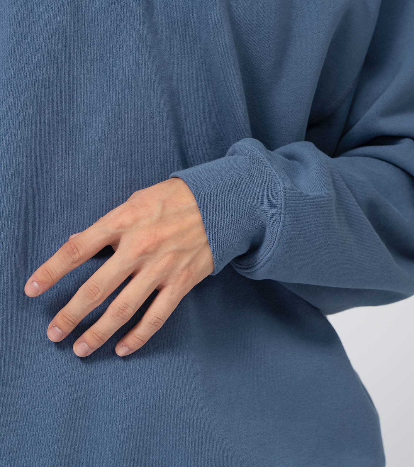・Garment dyed for coloring and texture like a well-worn sweatshirt