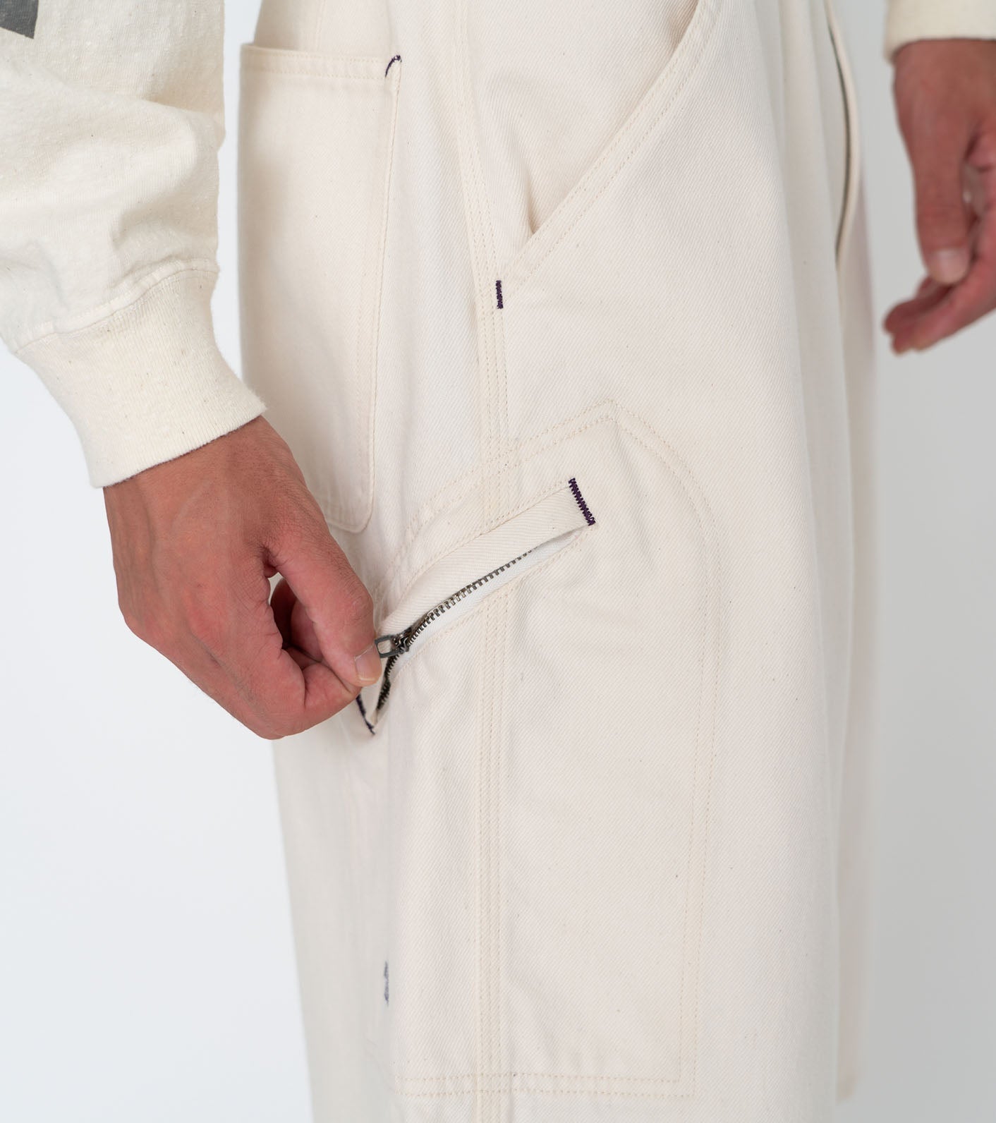 ・Purple-colored bar tack adds design accents