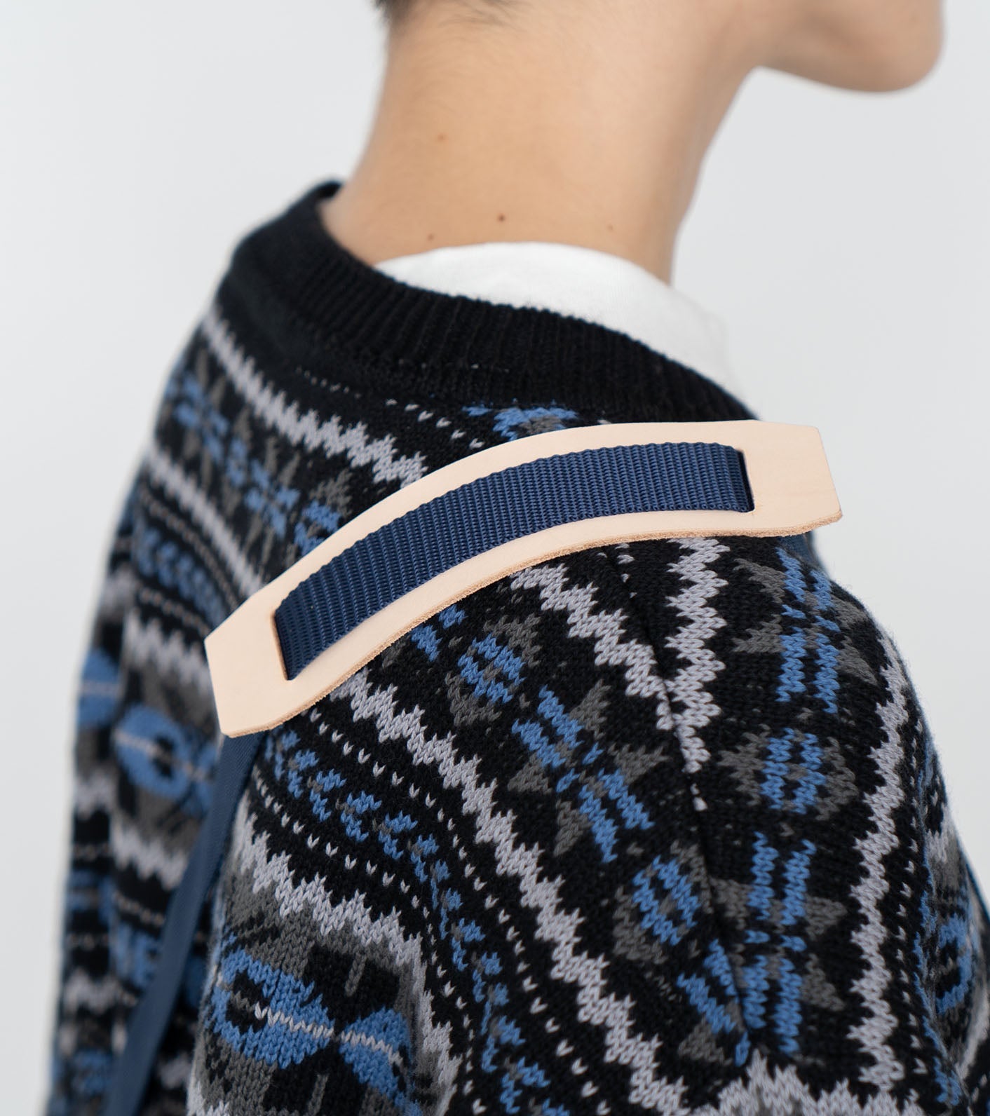 ・Design features colorful chord pull and shoulder pads made of tanned leather
