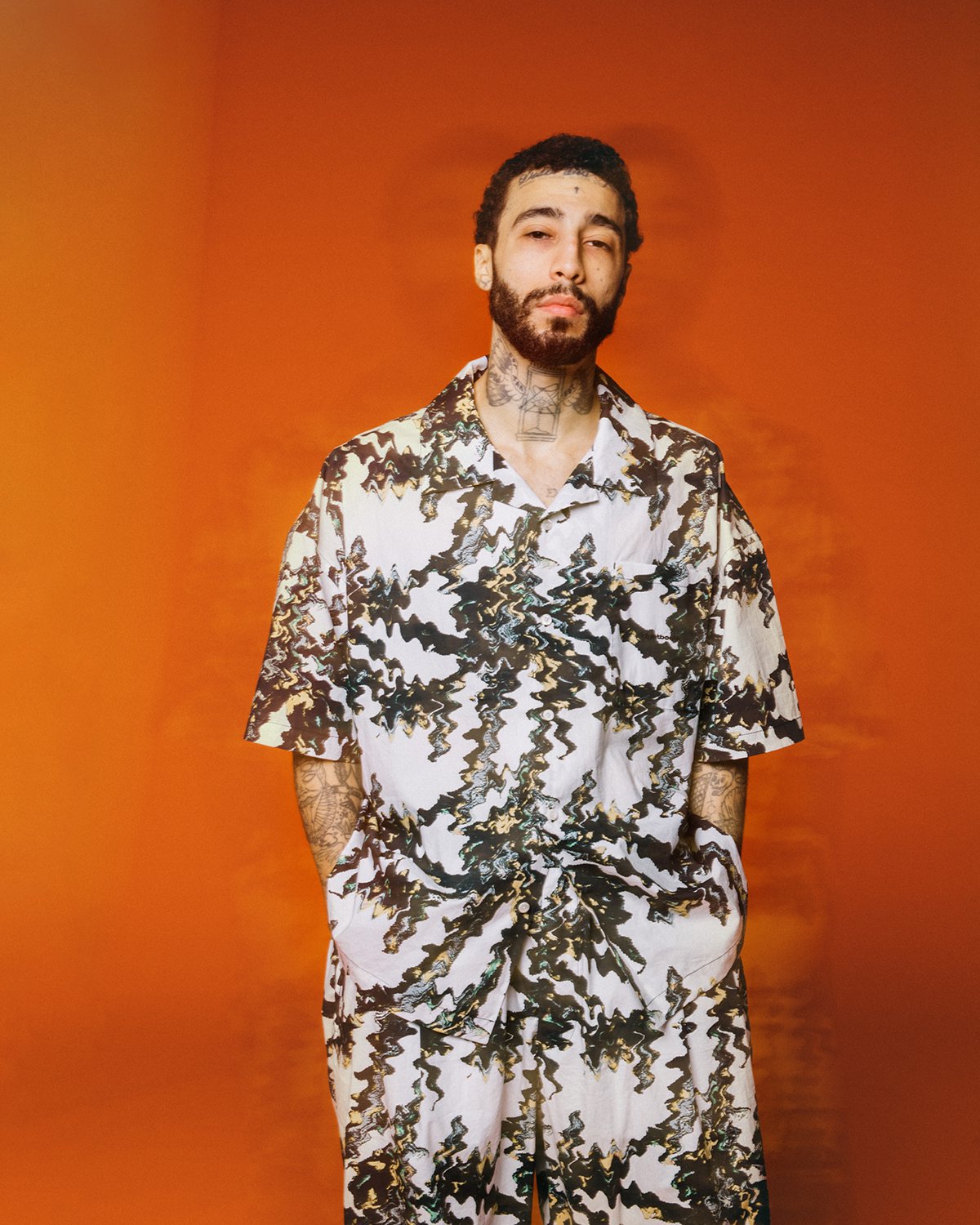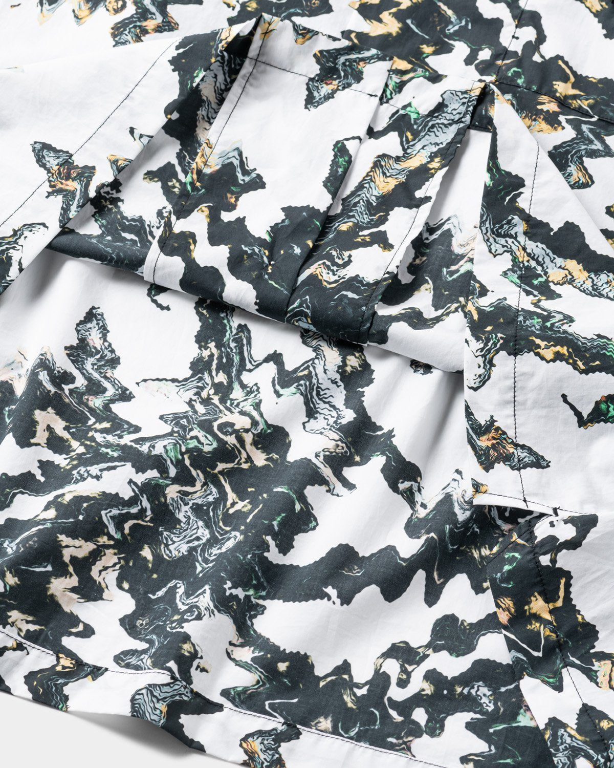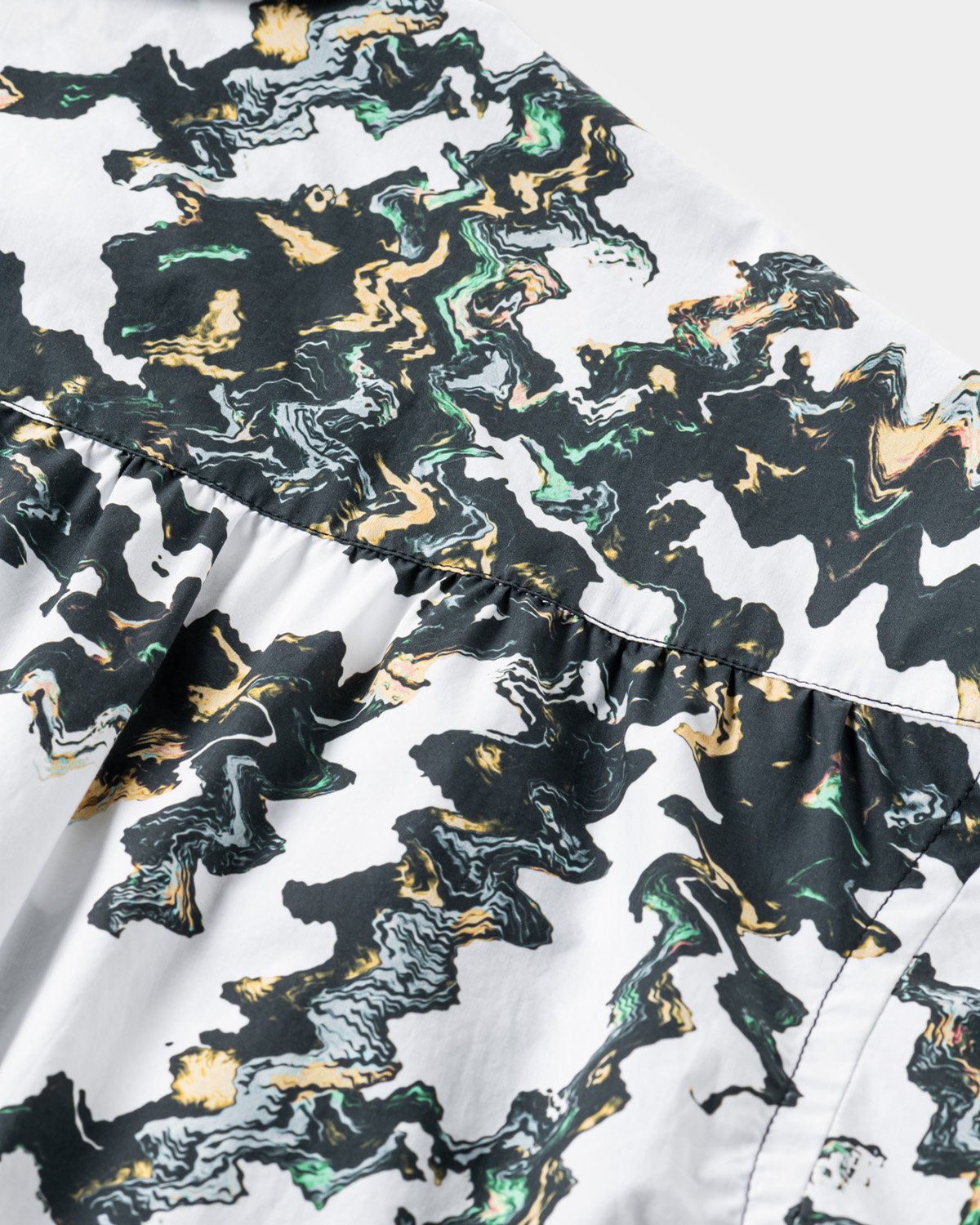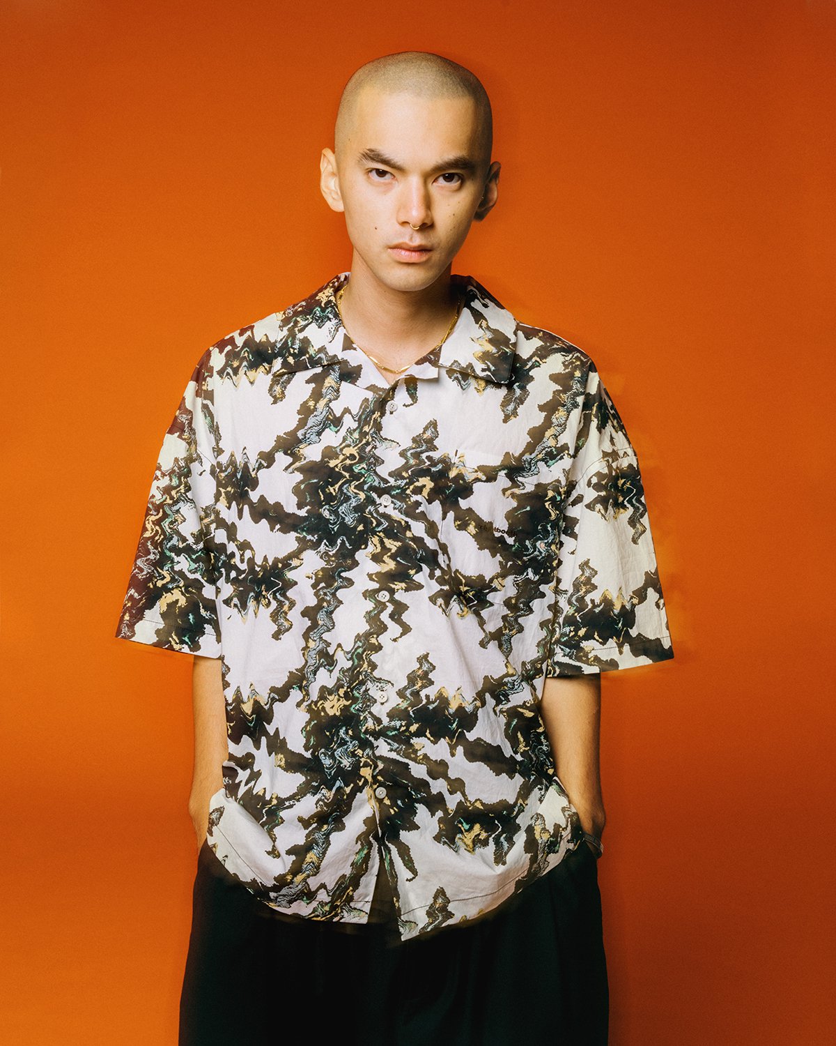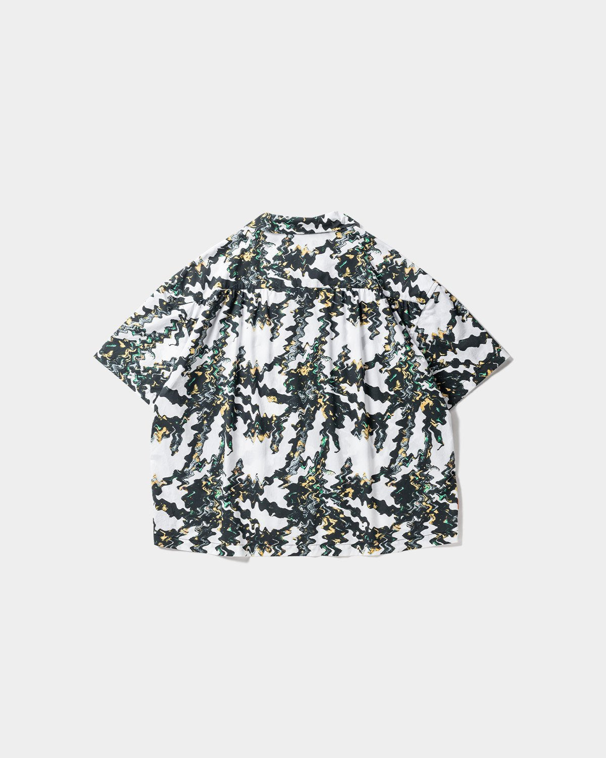 Open-collar shirt with original graphics printed all over with inkjet.