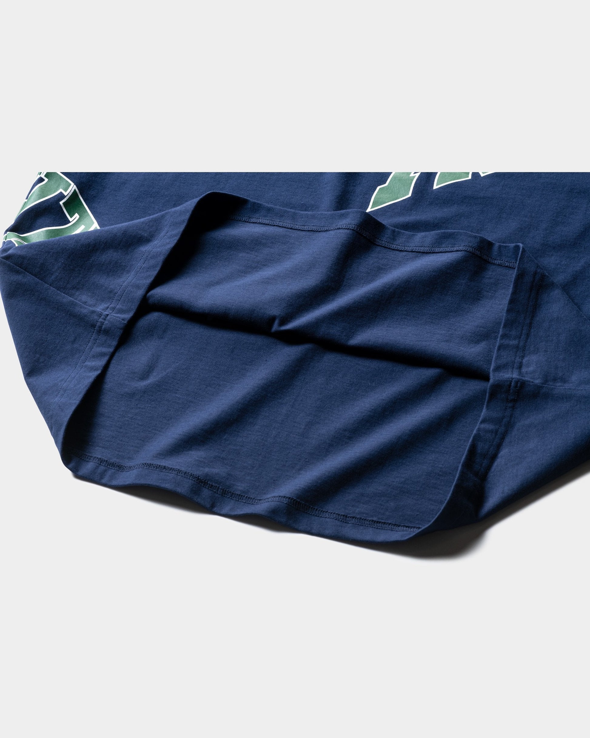 Features a rubber printed logo graphic placed irregularly from the front to the arms and from the back to the front.