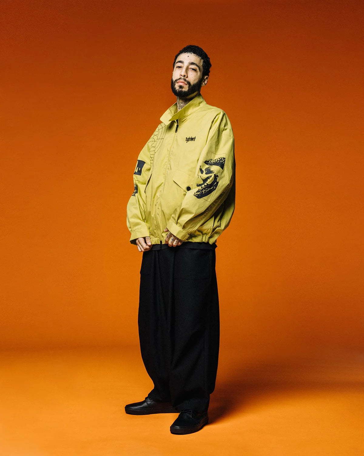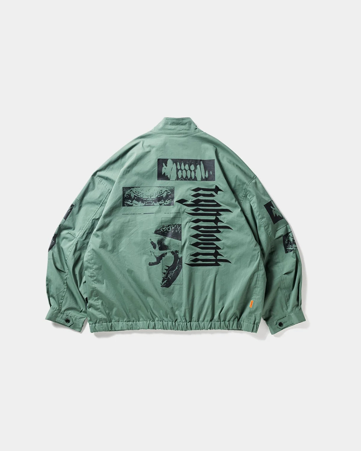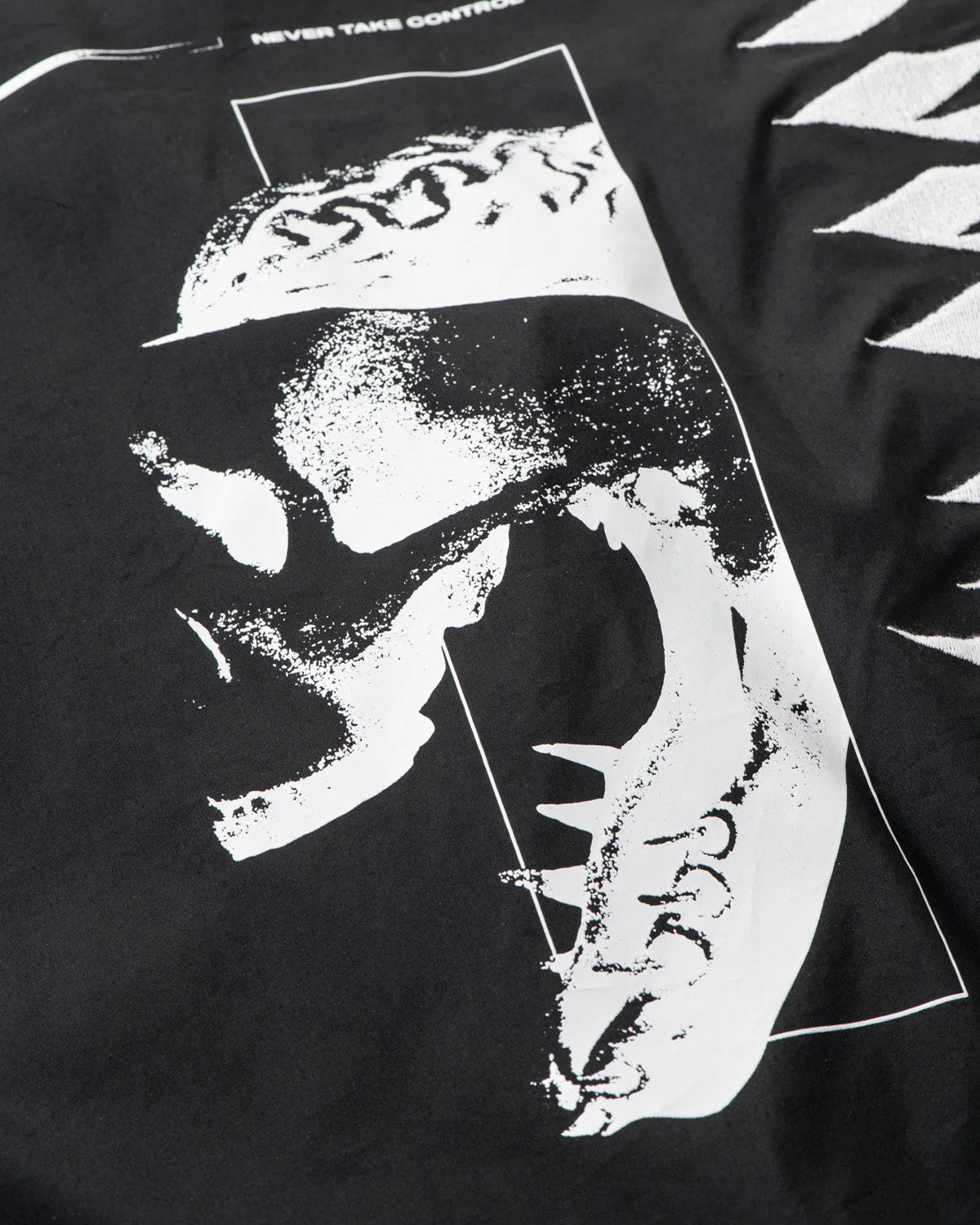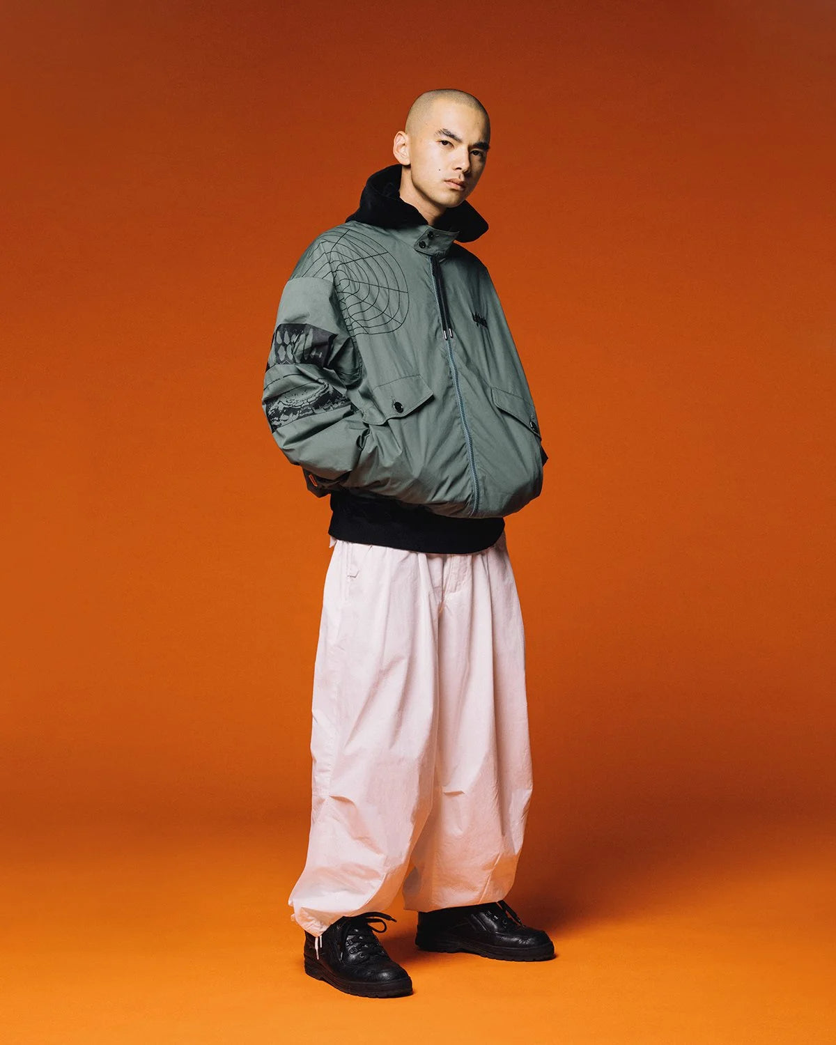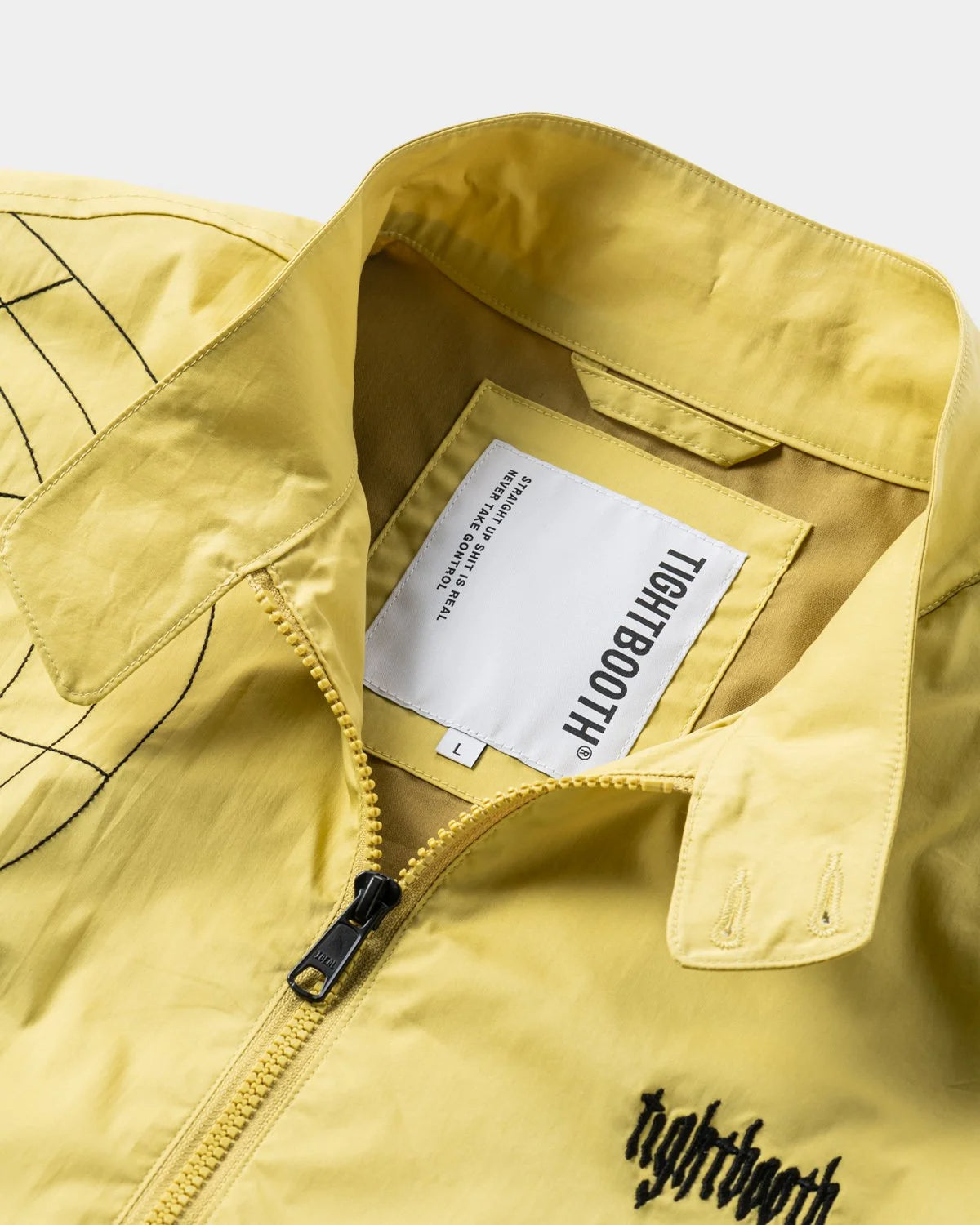 The front has a double zip design. with a logo embroidered on the left chest and a spider stitch design on the right shoulder.