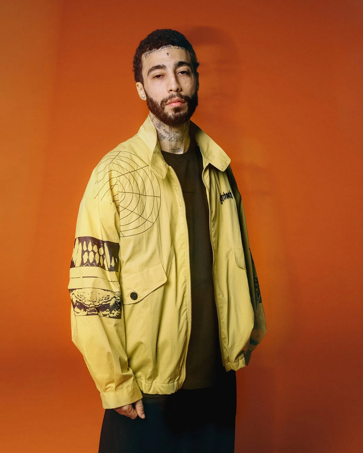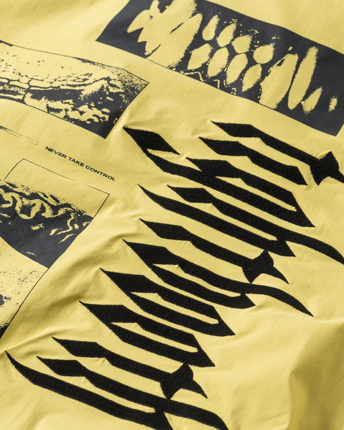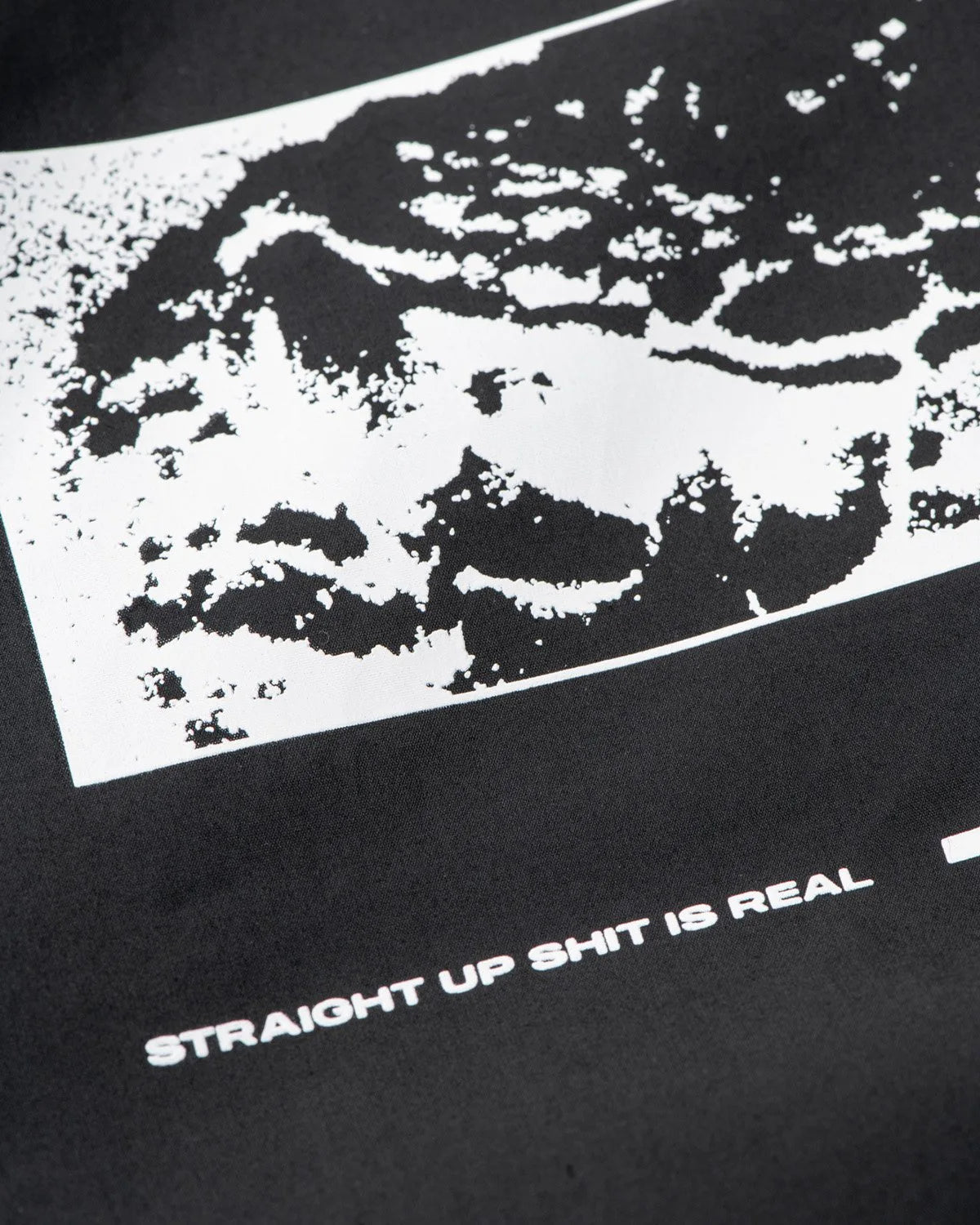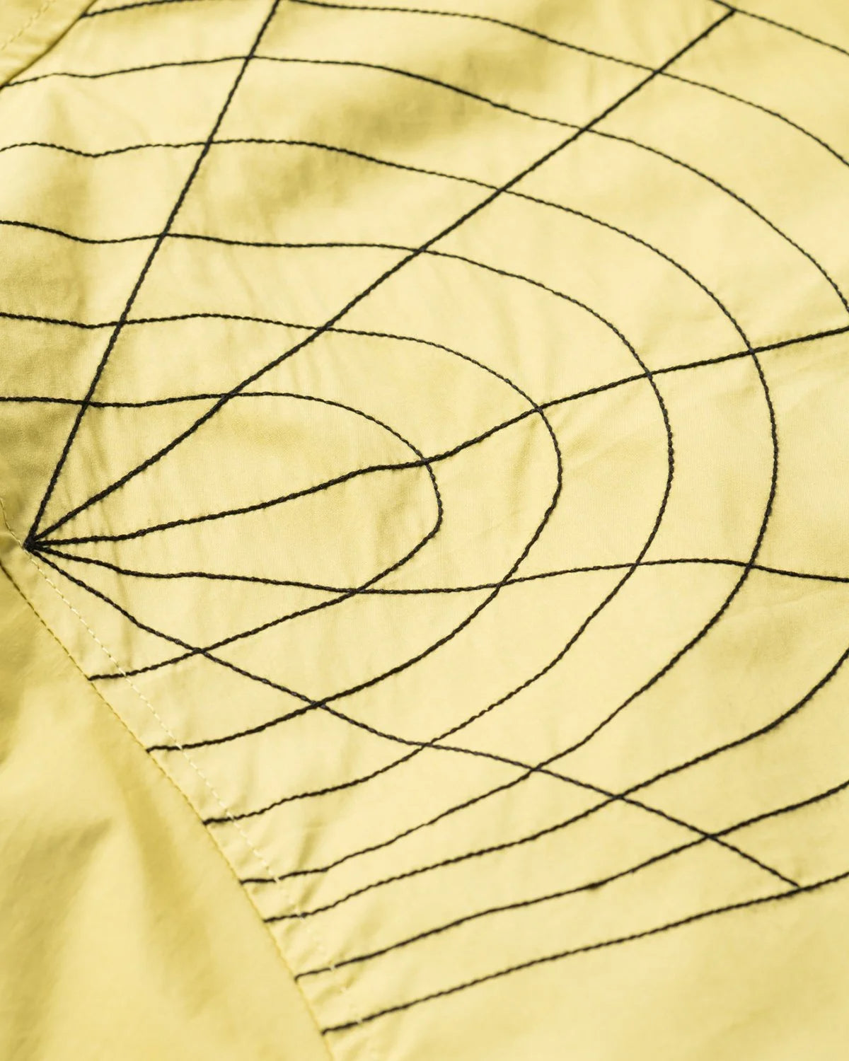 The front has a double zip design. with a logo embroidered on the left chest and a spider stitch design on the right shoulder.