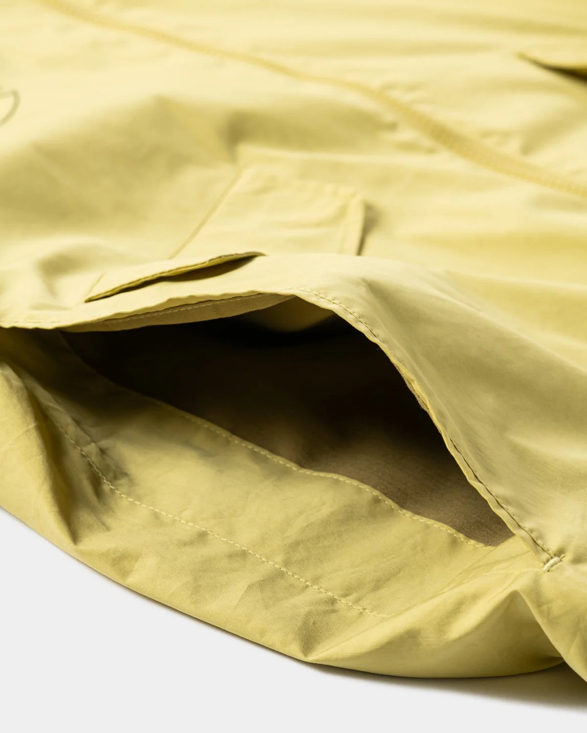 In addition to angled flap pockets on both sides. there are also slash pockets.