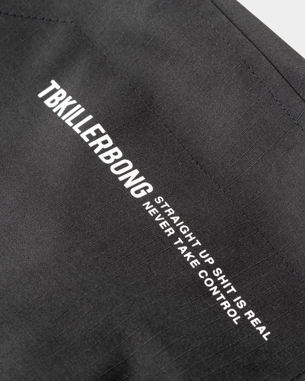 The front has three diagonal slash pockets and TBKB embroidery.