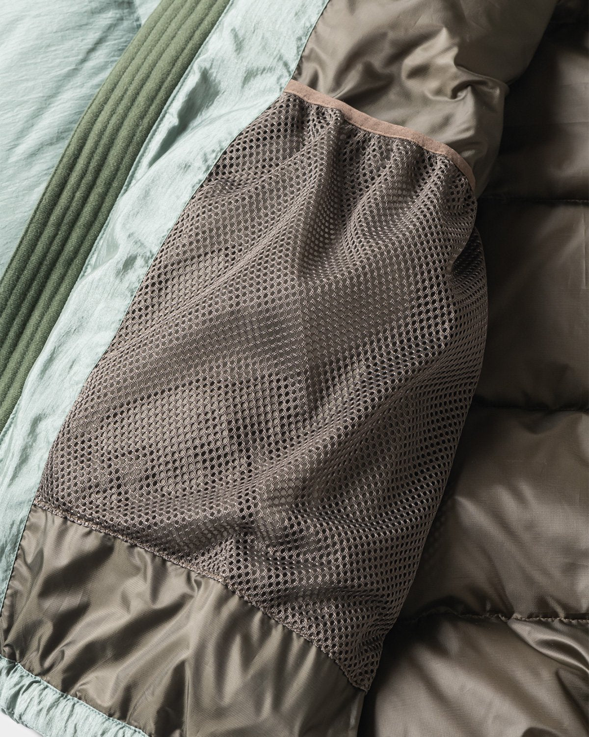 (Outer) Nylon 100% (Lining) Polyester 100% (Filling) Down 80%. Feather 20%
