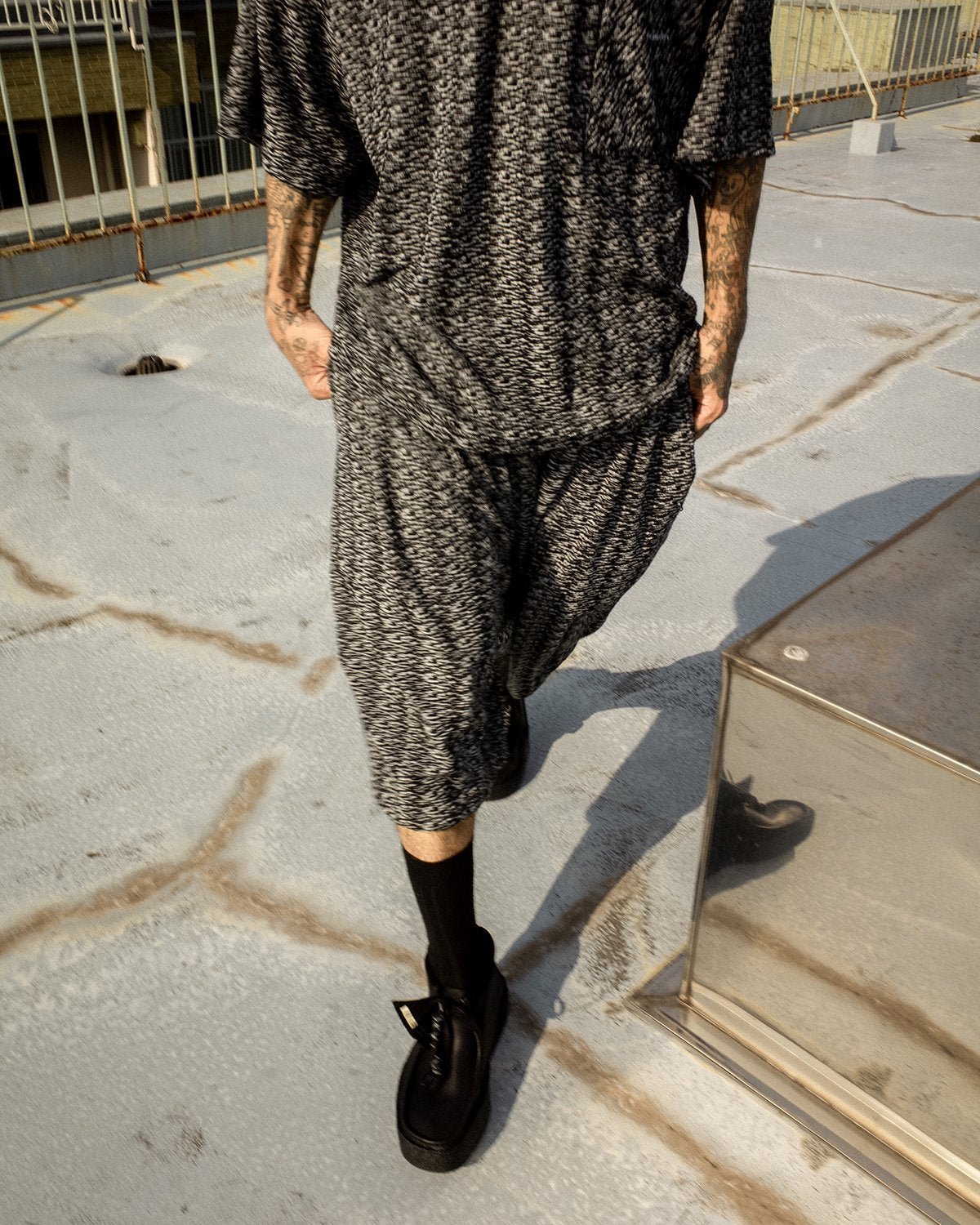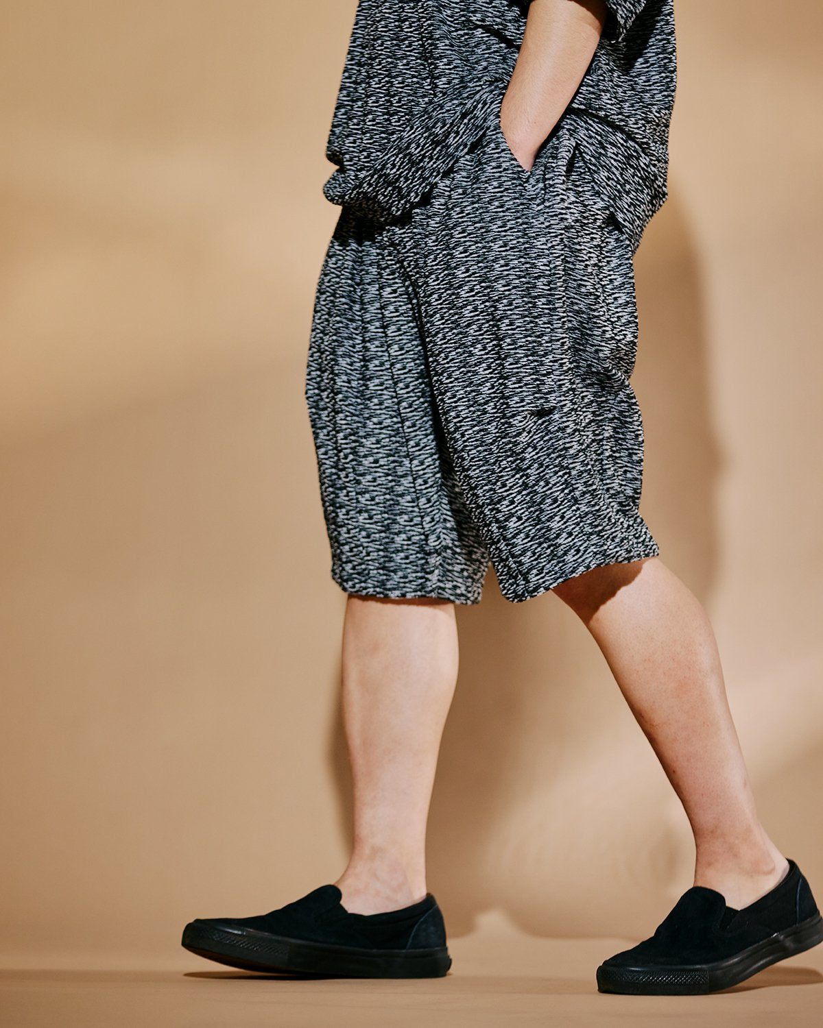 These shorts are made of a comfortable pile fabric with loops woven in a random color scheme.