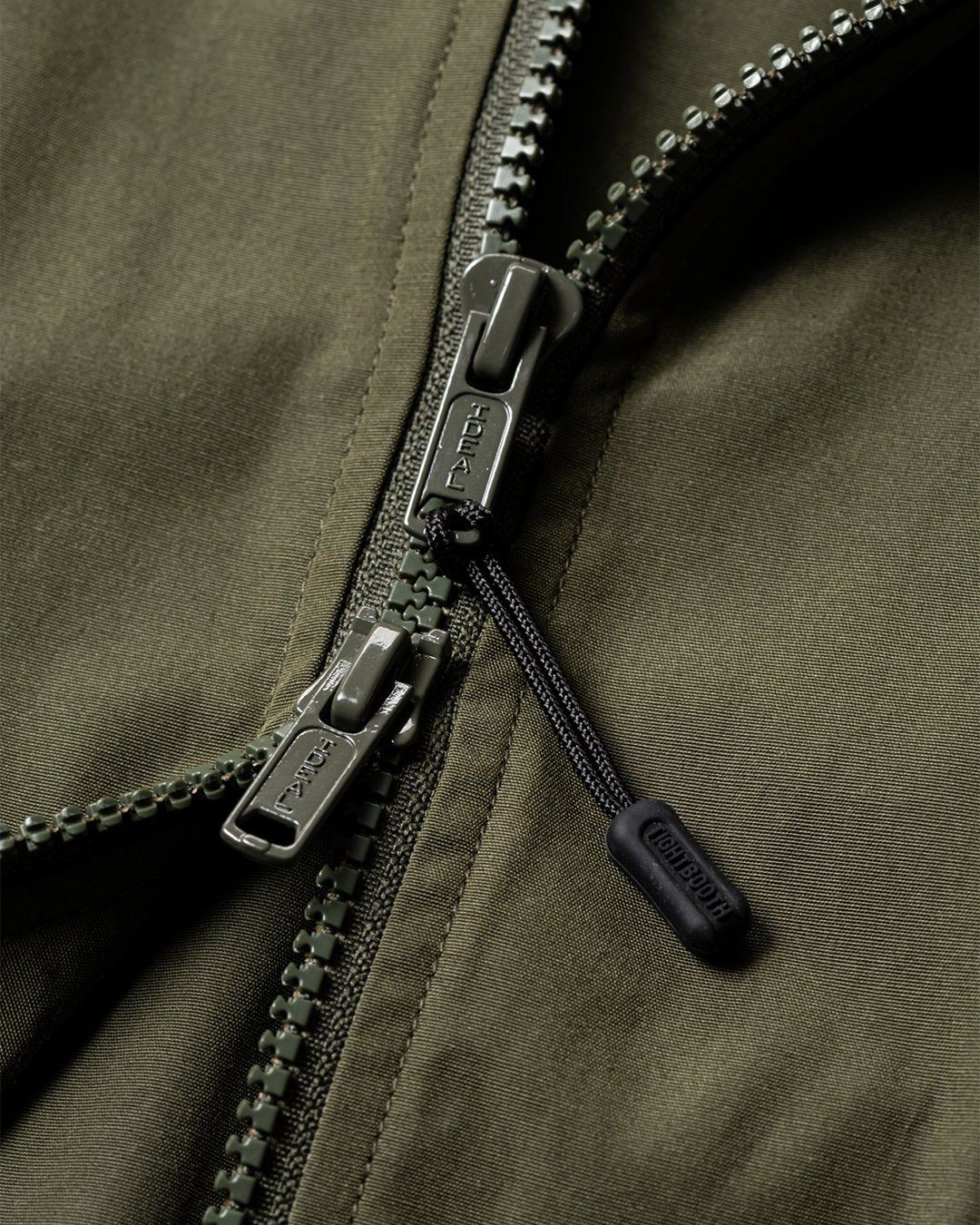 The front body has not only slash pockets on the sides. but also a concealed pocket at the fabric switching area slightly inward from the slash pockets.