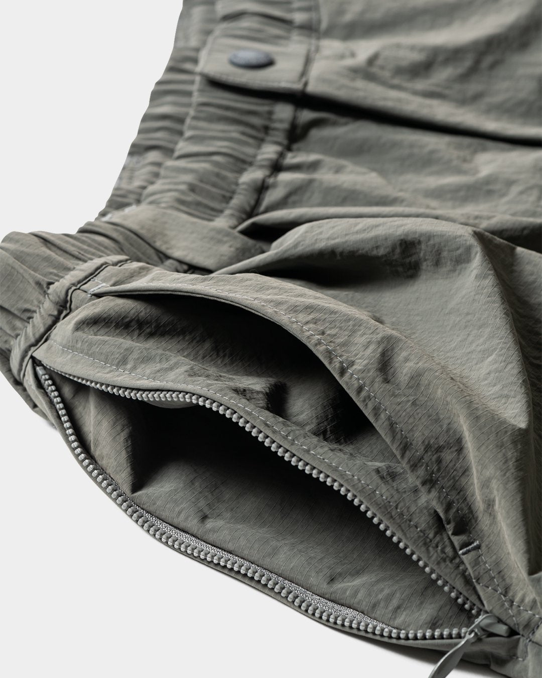 The ripstop nylon material has been salt-shrunk to give it a moderate wrinkled and matte texture.