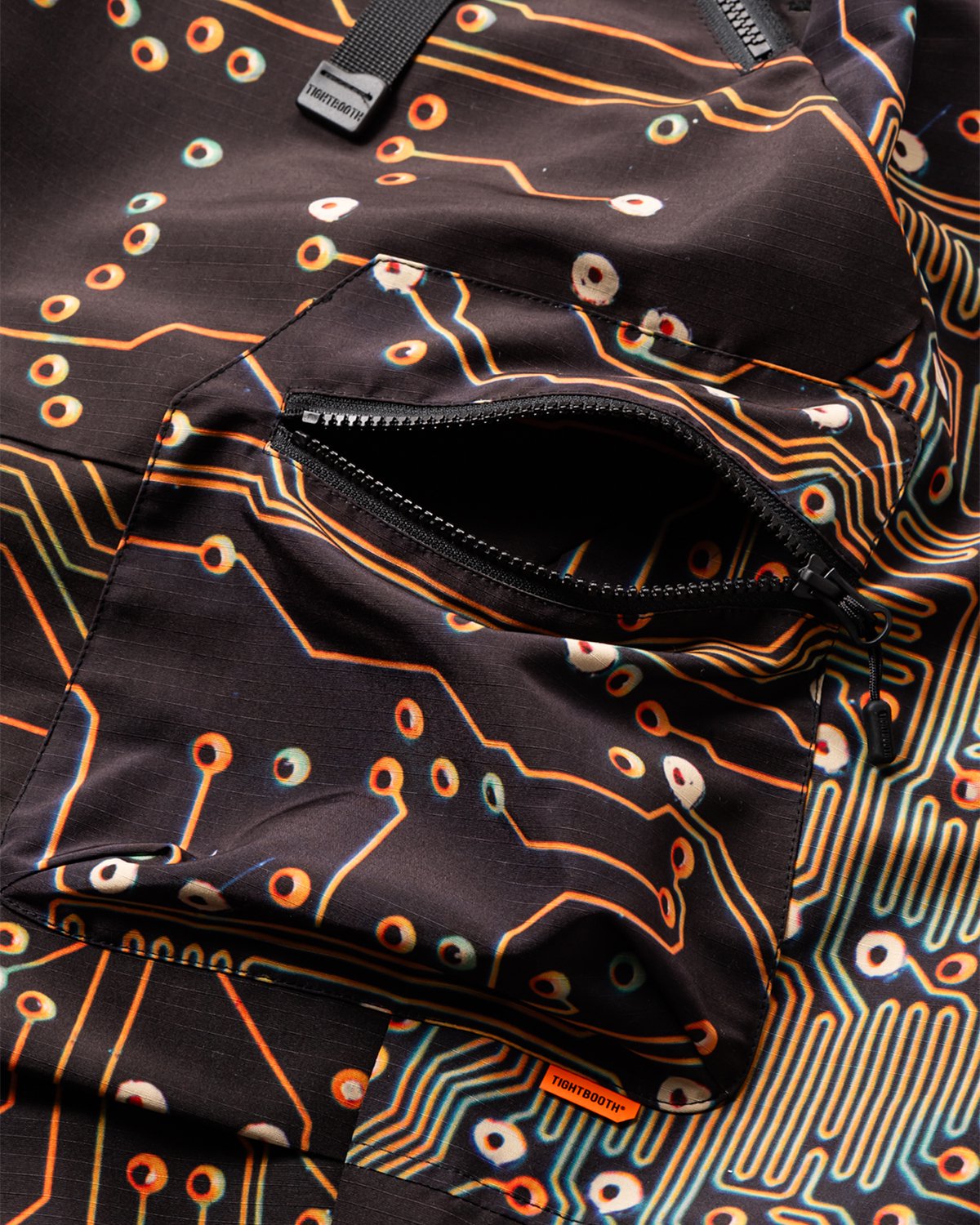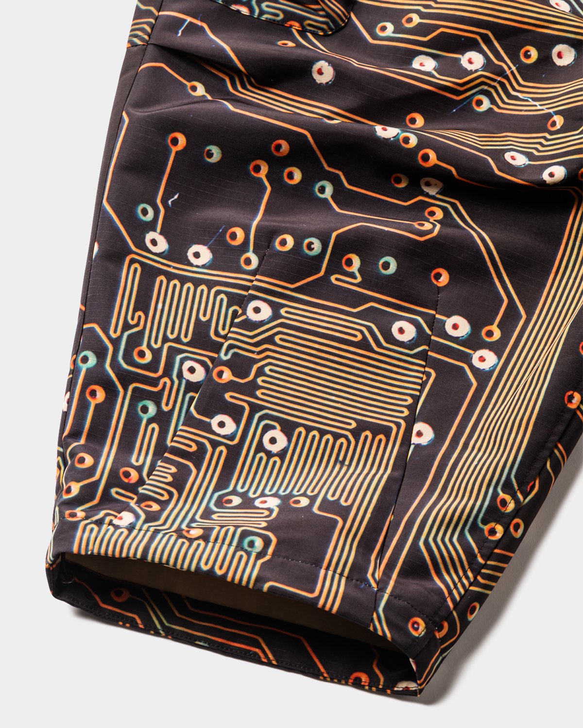 In addition to two solid colors. the design features an all-over semiconductor graphic pattern.