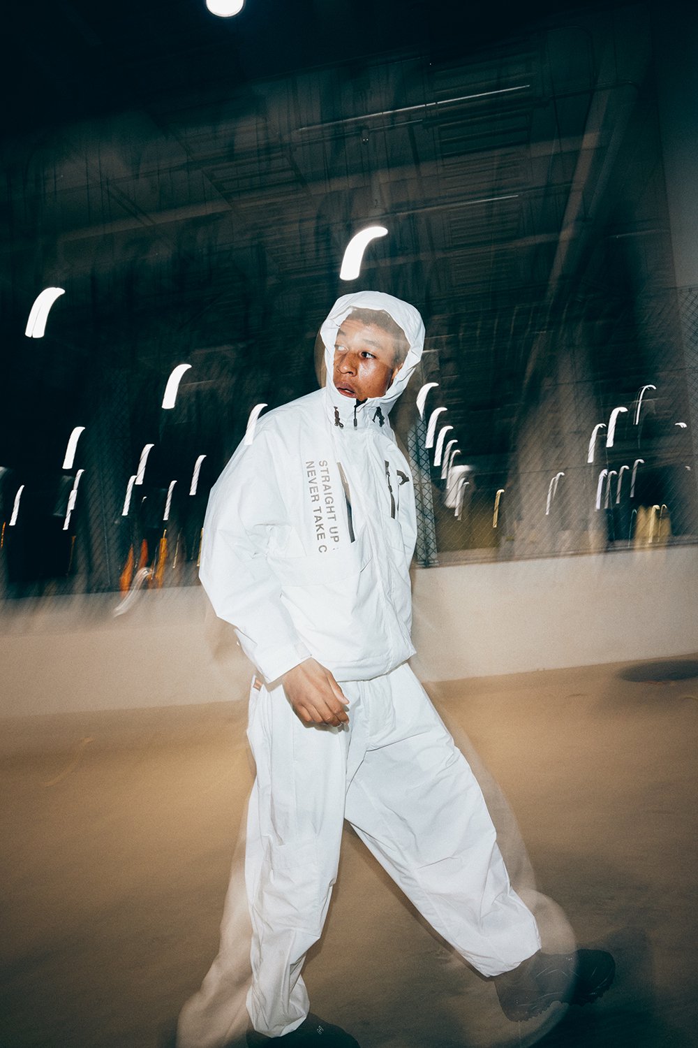 The hem is narrowed and the knee tucks create a three-dimensional. roomy silhouette.