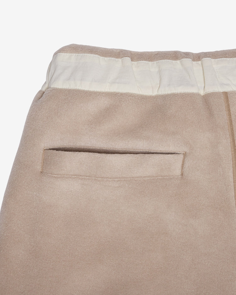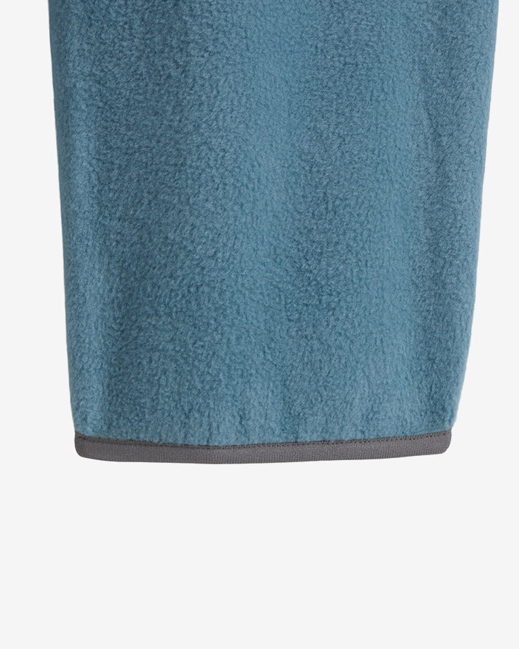The fleece material is made of recycled polyester and rayon blended yarn. which gives it a gentler feel. It has a fluffy brushed feel and a high-quality soft finish. The details are made of lightweight and durable nylon taslan taffeta fabric. which not only adds to the design. but also adds durability to the moving areas that are prone to friction when worn.