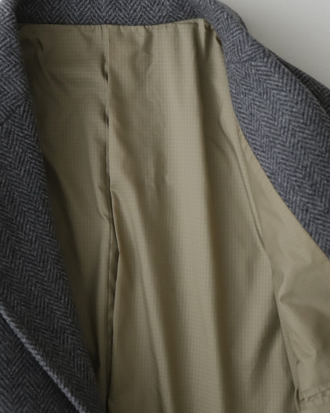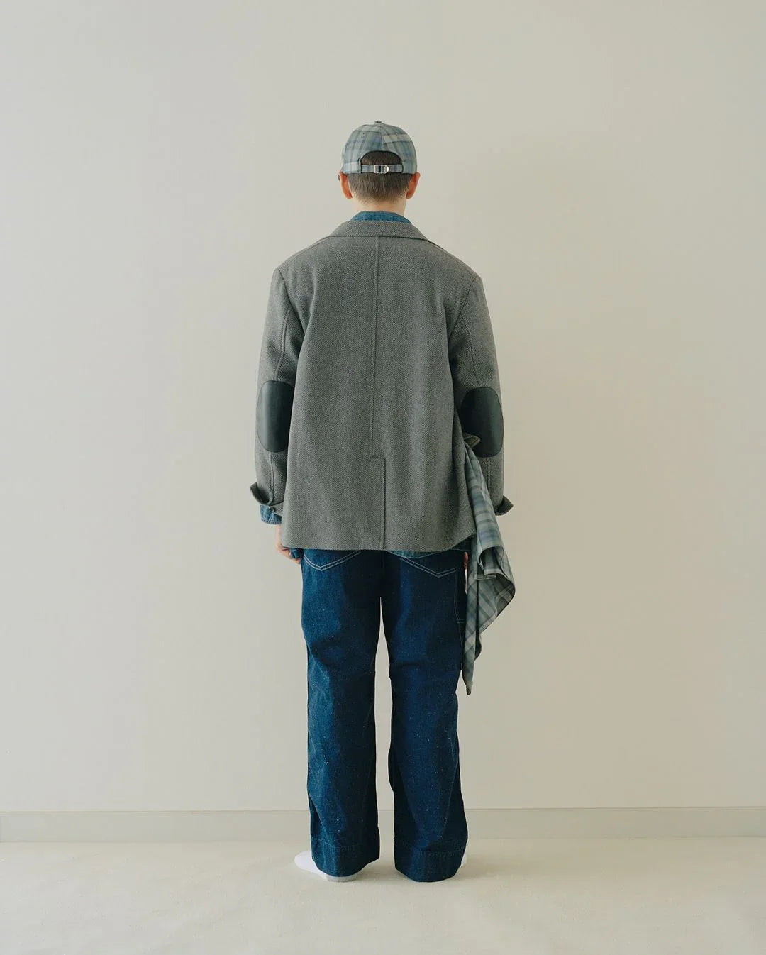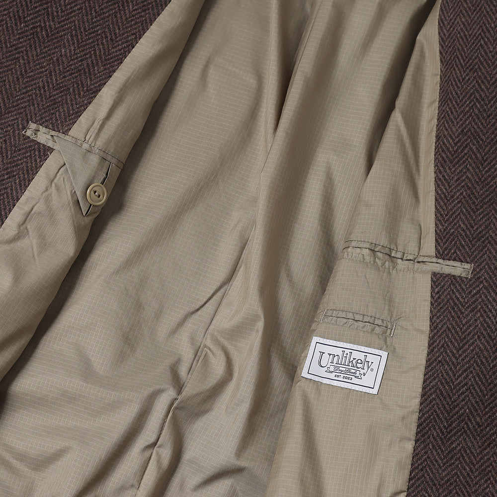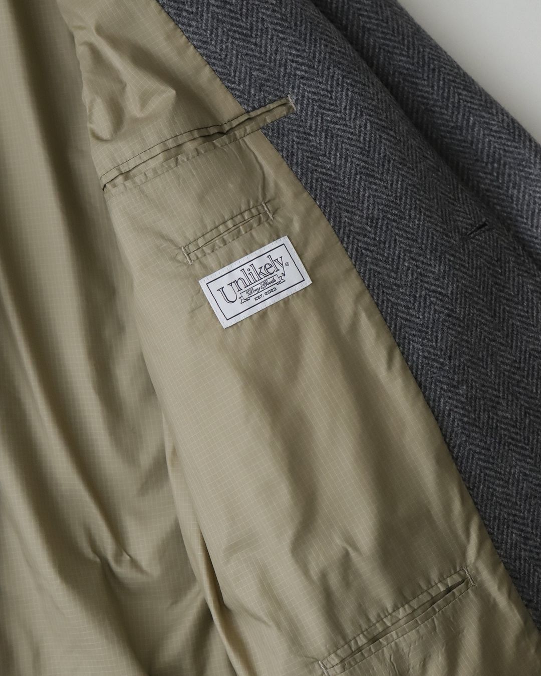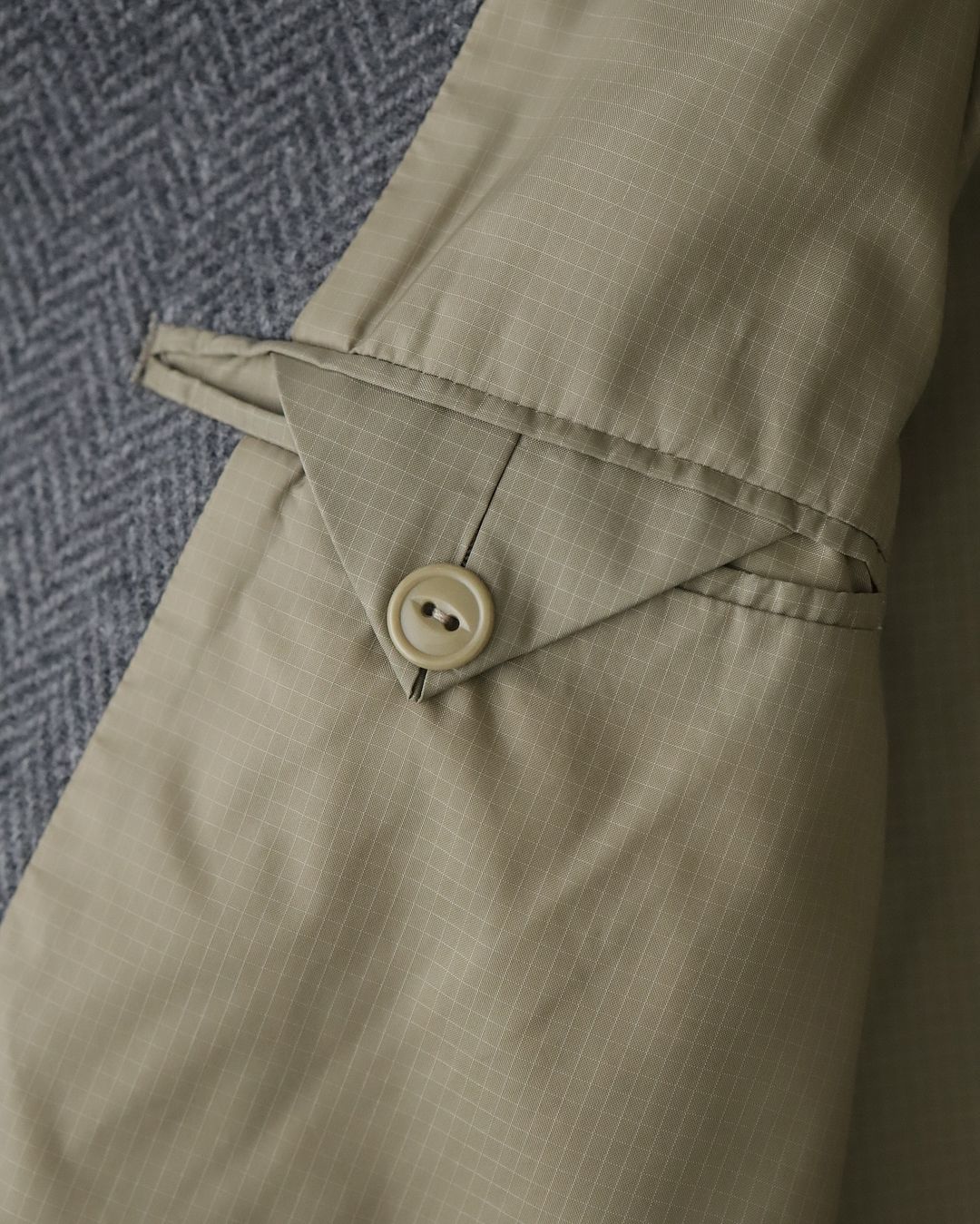 Based on a 3-button notch lapel center hook vent and 60s sports coats. it combines various elements such as the distinctive lapels symbolizing the 70s. the extremely low chest welt pockets and sloping shoulders to create a unique balance.