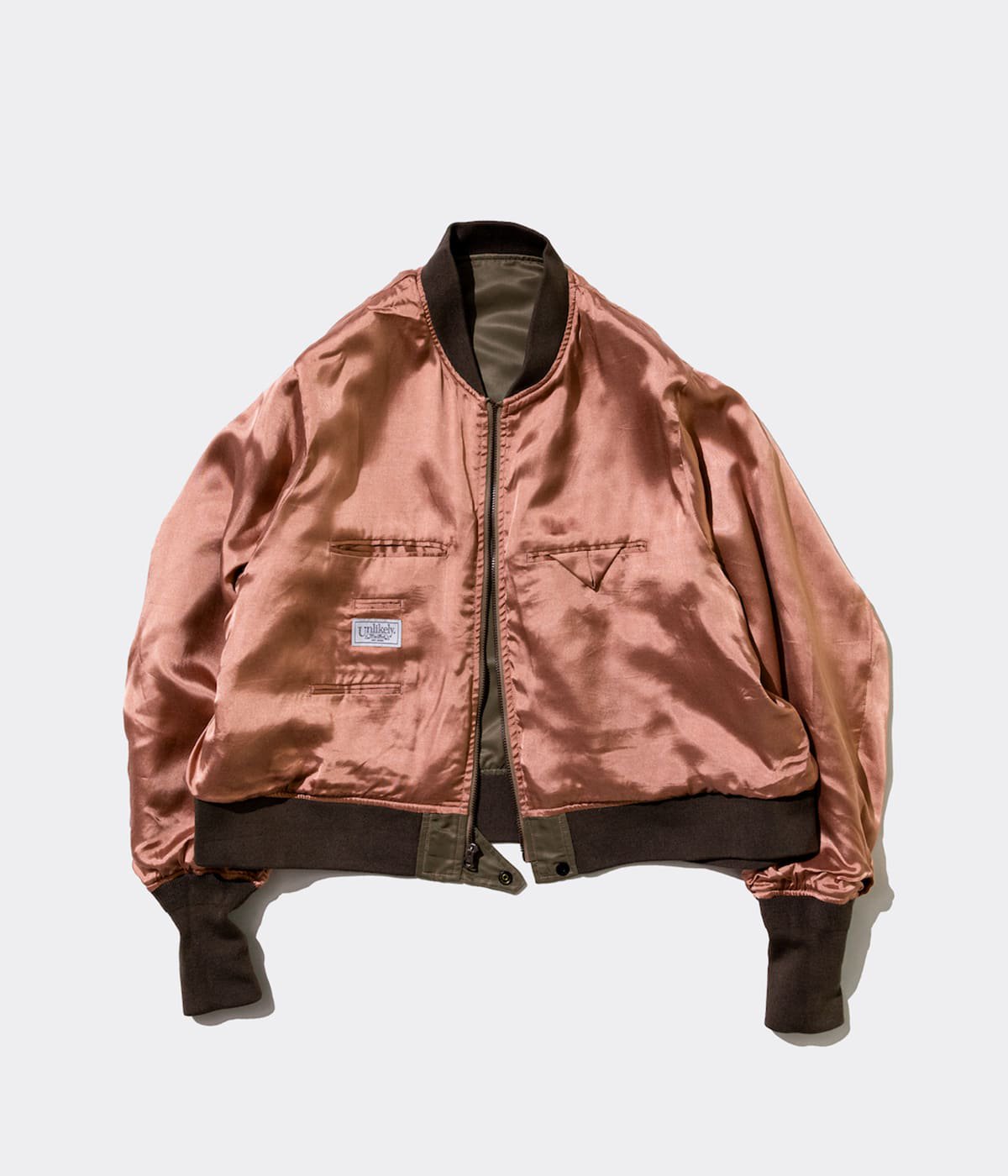 This is an unusual L-2B jacket that has been created with a brand new design that has the fading feel of a vintage flight jacket that has deteriorated over time.