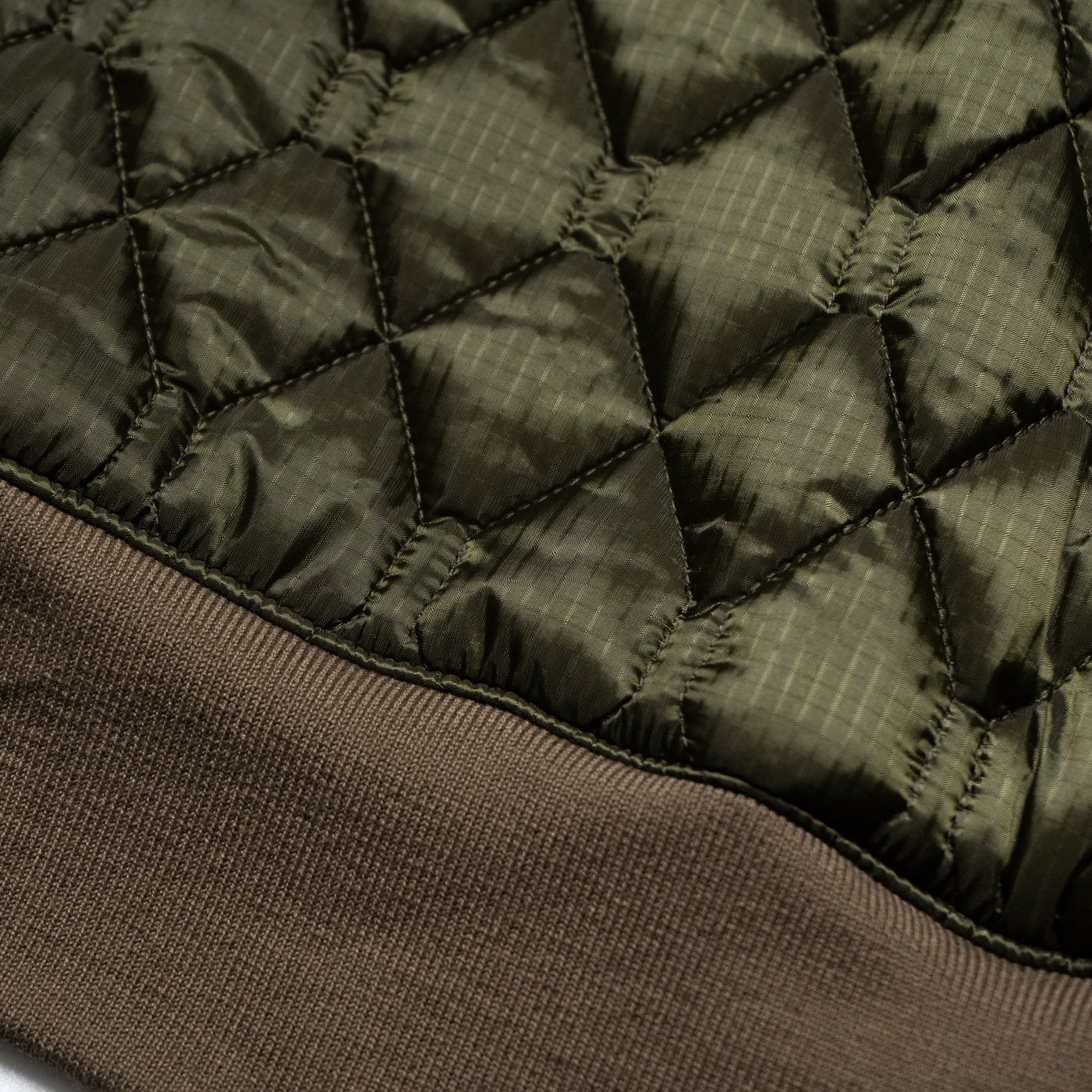 This item is an arrangement of the classic tanker jacket (JACKET WINTER COMBAT). which represents the US military. so that it can be worn reversibly. The design of the later model is used on the front and the early model on the back. By using completely different materials on both sides. it has a look that makes it hard to believe that it is the same item. The inside is updated with Primaloft padding to make it lightweight. As an Unlikely point. the quilted design on the inside adds elements of the civilian tanker jacket worn by "that yellow cab driver". The design is also characterized by the fake action pleats on the shoulders. the longer ribbing on the cuffs. and the addition of thumb holes to add warmth. It is arranged in a short length. making it a piece that you can enjoy layering.