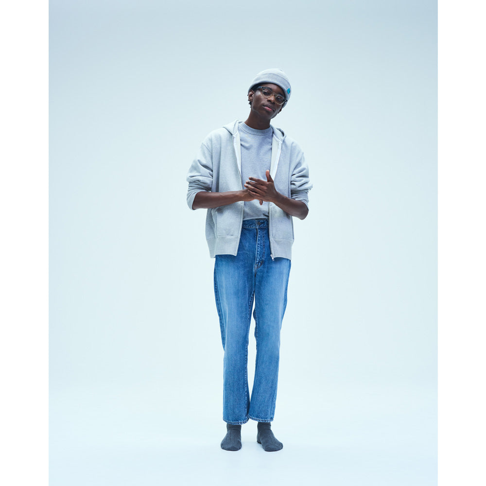 In addition to the simple finish of the not-too-large hood and set-in sleeves seen in classic hoodies. it is sewn with two needles.