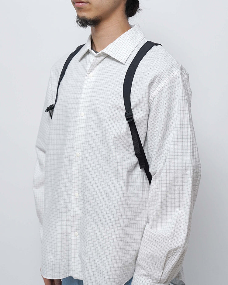 This bag is based on the scarab. a beetle that was considered an incarnation of the sun god in ancient Egypt. It is made from a high-density woven cotton-nylon fabric that is thin and has a matte texture.