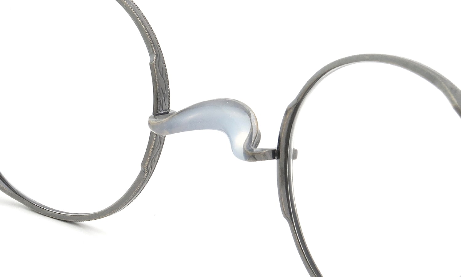 It features a small. 41mm round shape with a single-bridge. Despite its simple structure. intricate engraved patterns on the deep-set sides of the front rim create a rich sense of detail. similar to a sturdy rim. This frame is highly recommended for those with stronger prescriptions.