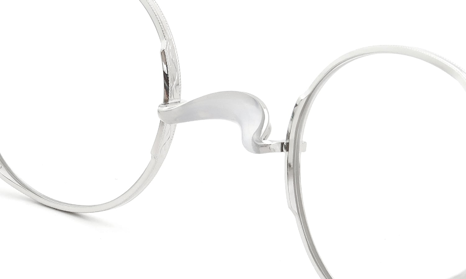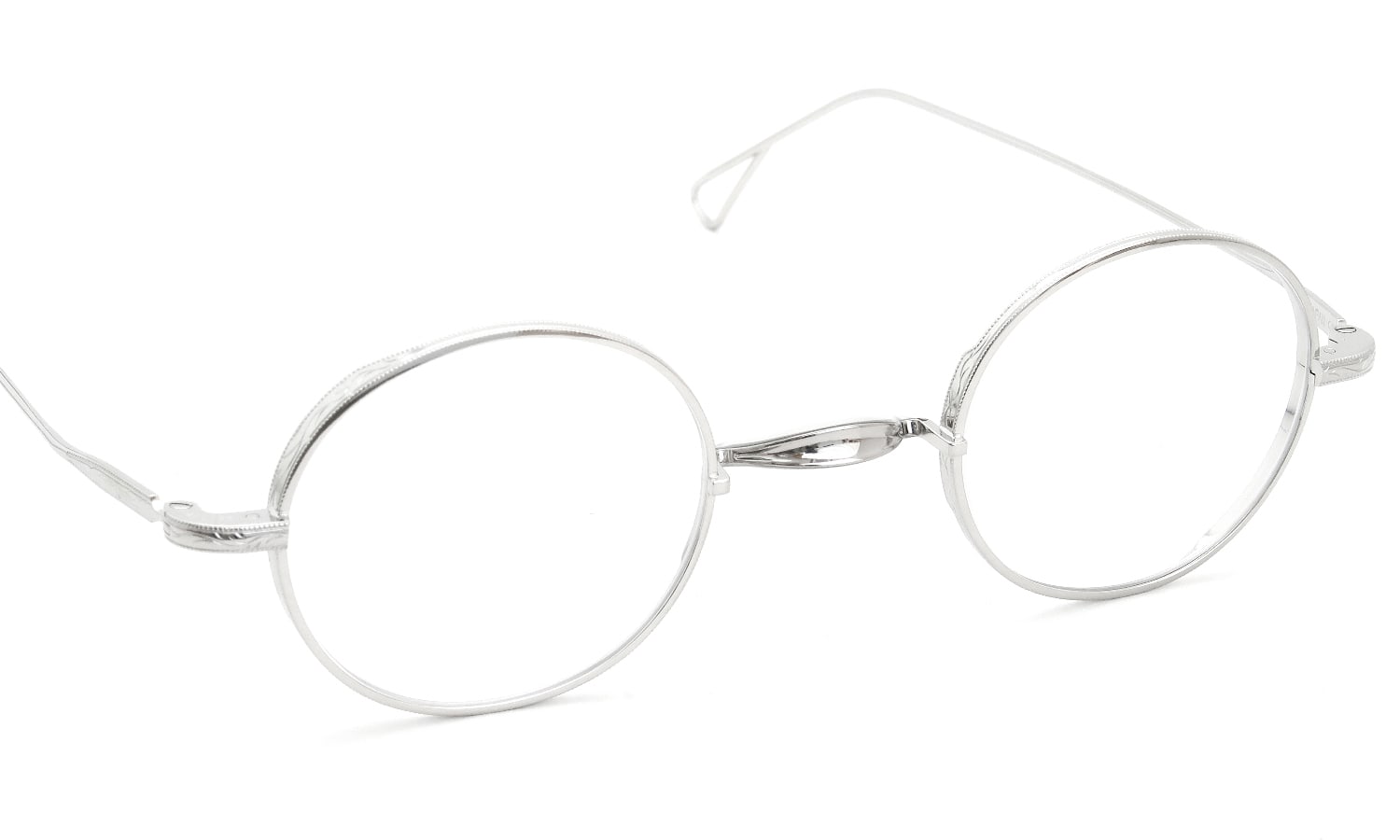 It features a small. 41mm round shape with a single-bridge. Despite its simple structure. intricate engraved patterns on the deep-set sides of the front rim create a rich sense of detail. similar to a sturdy rim. This frame is highly recommended for those with stronger prescriptions.