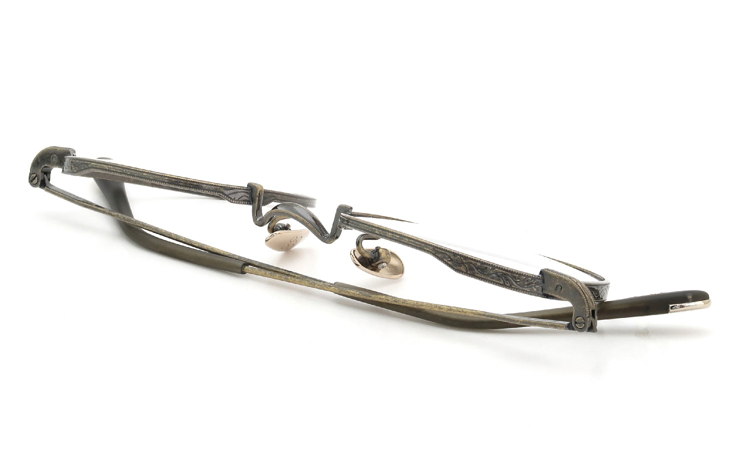 Boston-shaped metal frame DUKE from Yellows Plus. It has thick side rims and elaborate metal engravings on the sides for a luxurious finish. The material is titanium. which is lightweight and has excellent durability. combined with the elasticity of the material. making it a light and comfortable piece to wear.