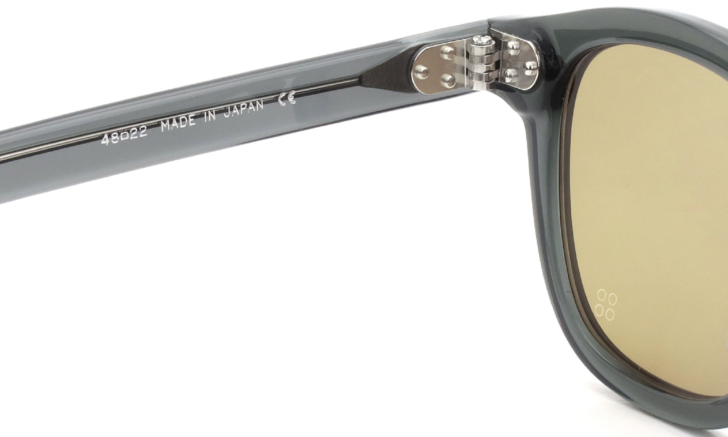 Wellington-style sunglasses with a simple and beautiful shape. Designed to be slightly thick. this model has a moderate presence. While adopting classic details such as a keyhole bridge and three-point studs on the front frame and temples. titanium nose pads and a thin inner temple improve the wearing comfort.