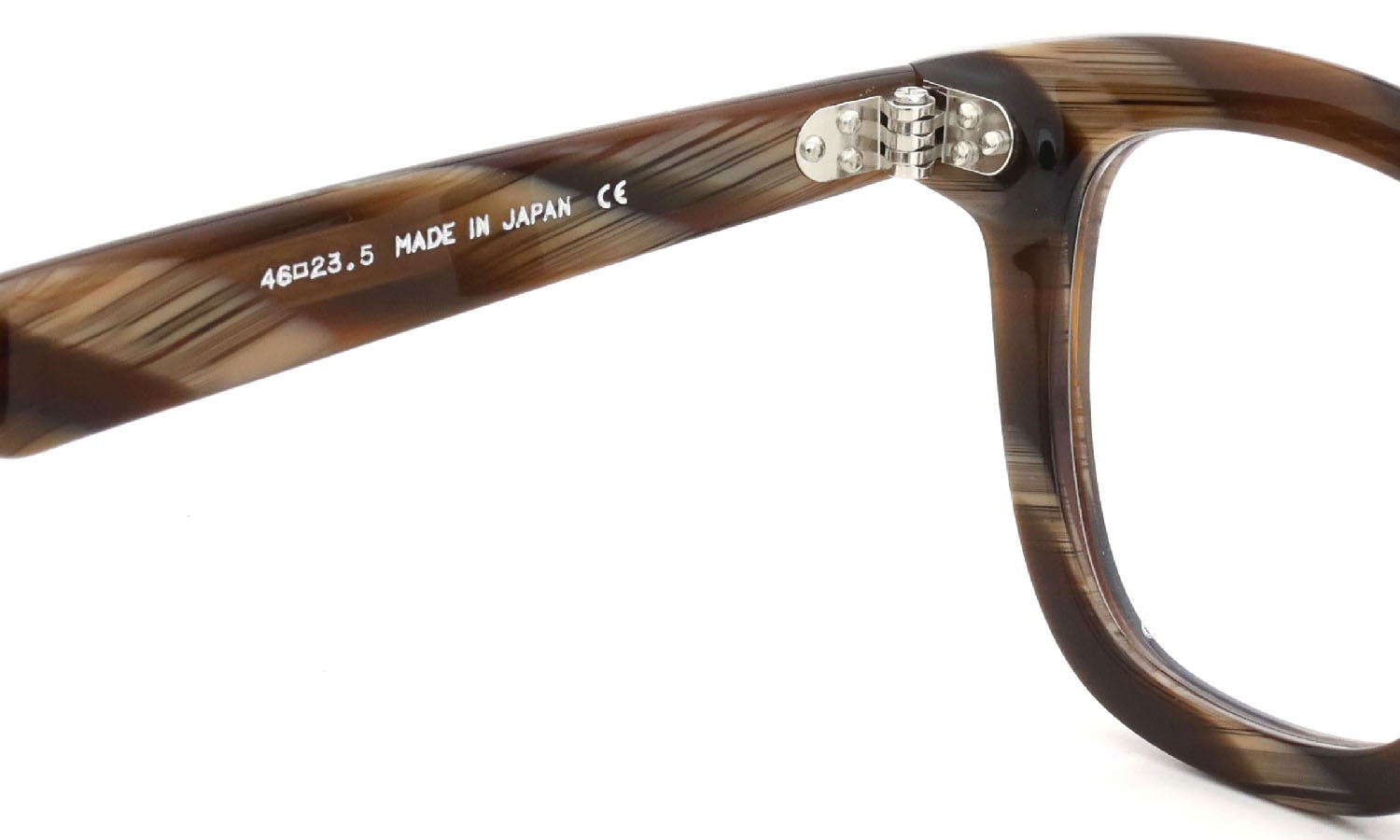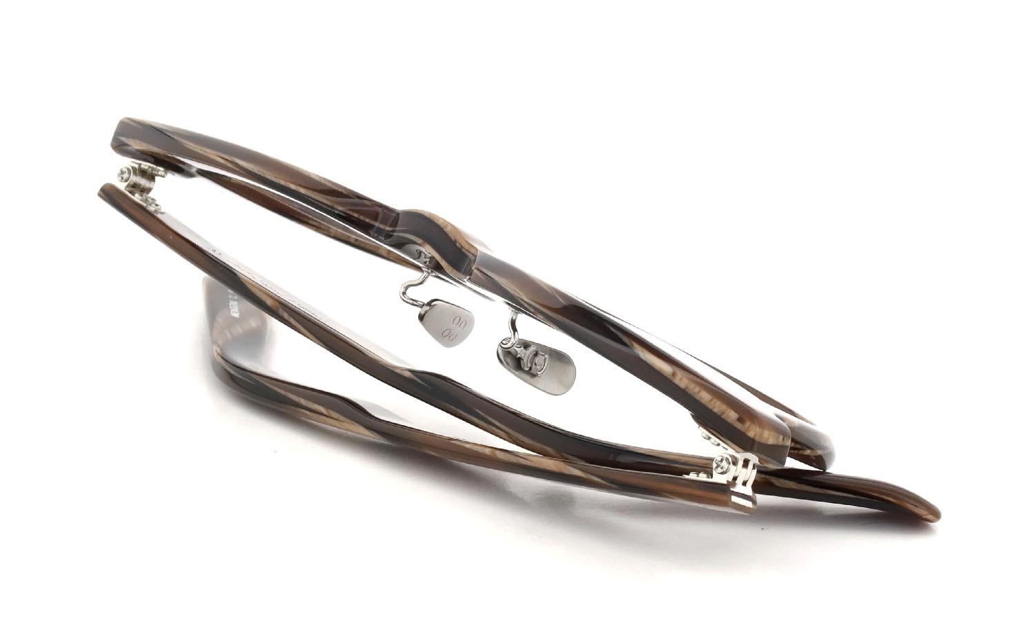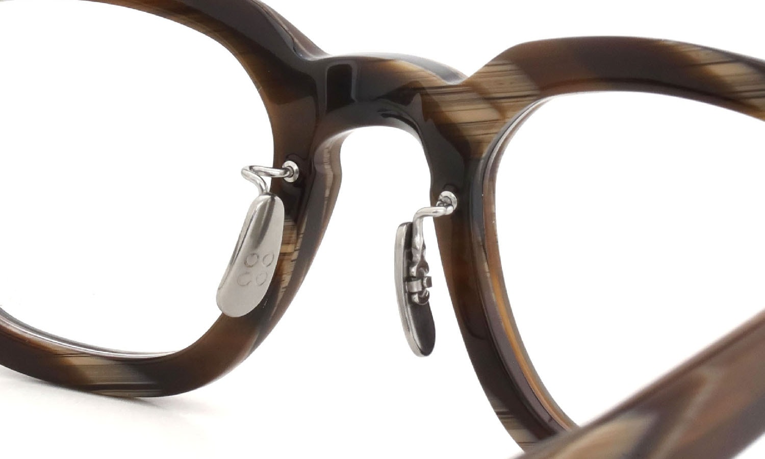 An incredibly well-balanced design. The angular lens shape. gracefully tapered brow line. and small three-point rivets come together beautifully. The medium-thickness temples add a sense of volume that matches the front's presence without overwhelming it. creating a perfect balance.