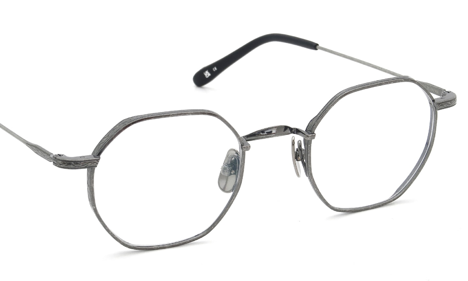 Yellows Plus hexagon-shaped metal frame SID. It has thick side rims and elaborate metal engravings on the sides for a luxurious finish. The material is titanium. which is lightweight and combines excellent durability with the elasticity of the material. making it a light and comfortable piece to wear.